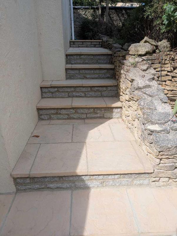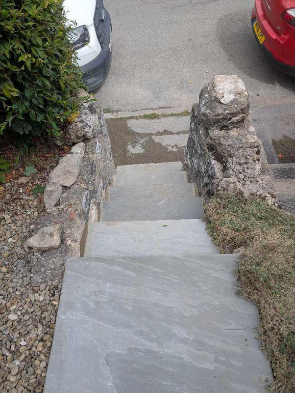 - Raindrain added and natural stone pathway repair
