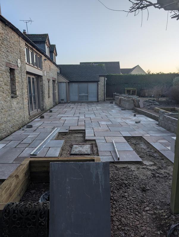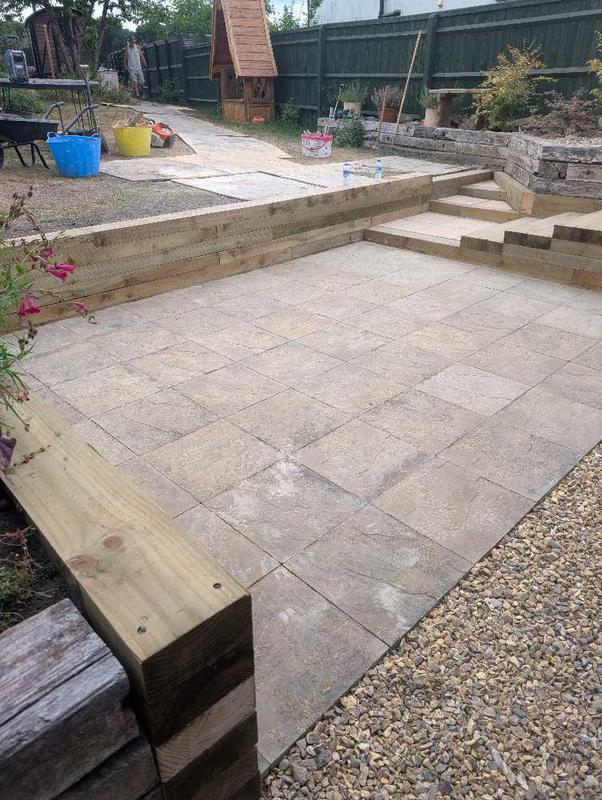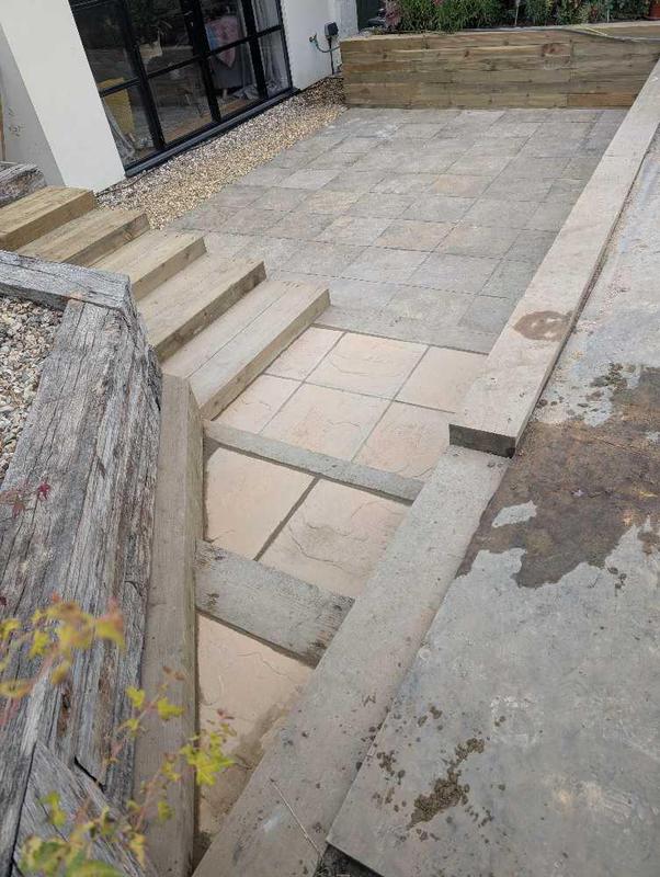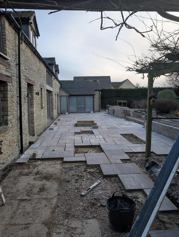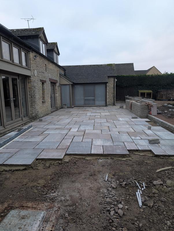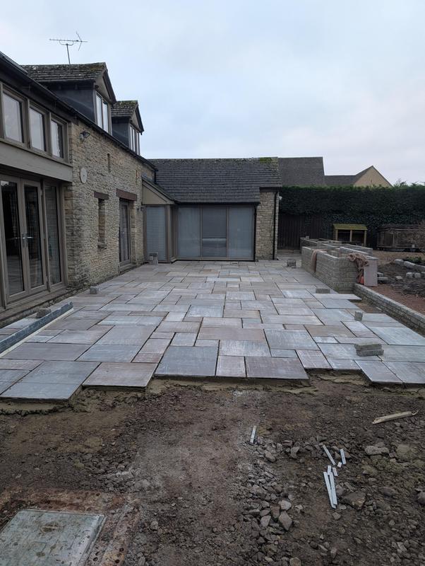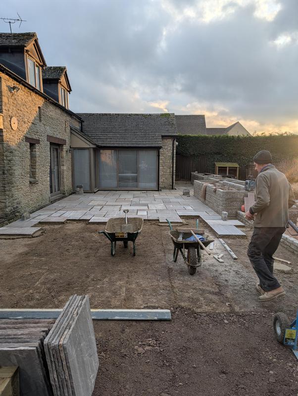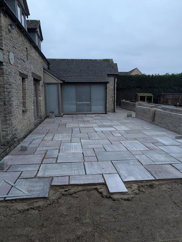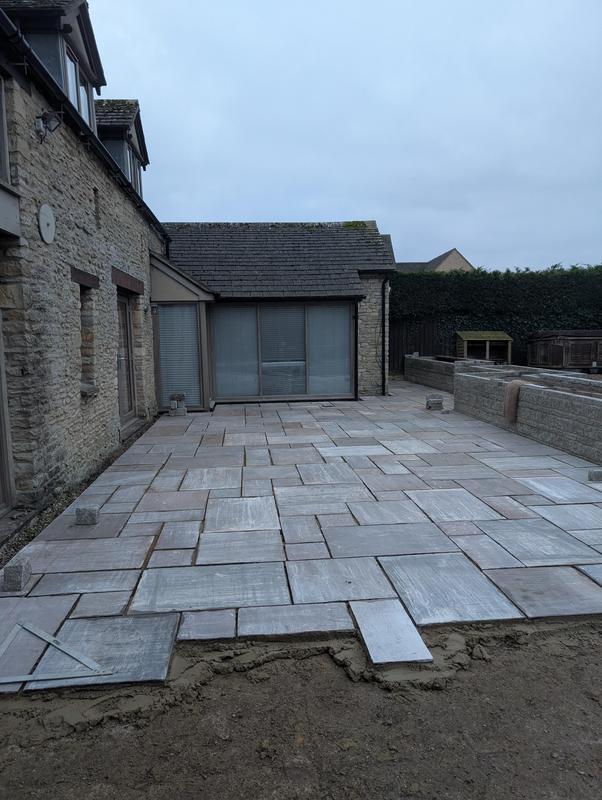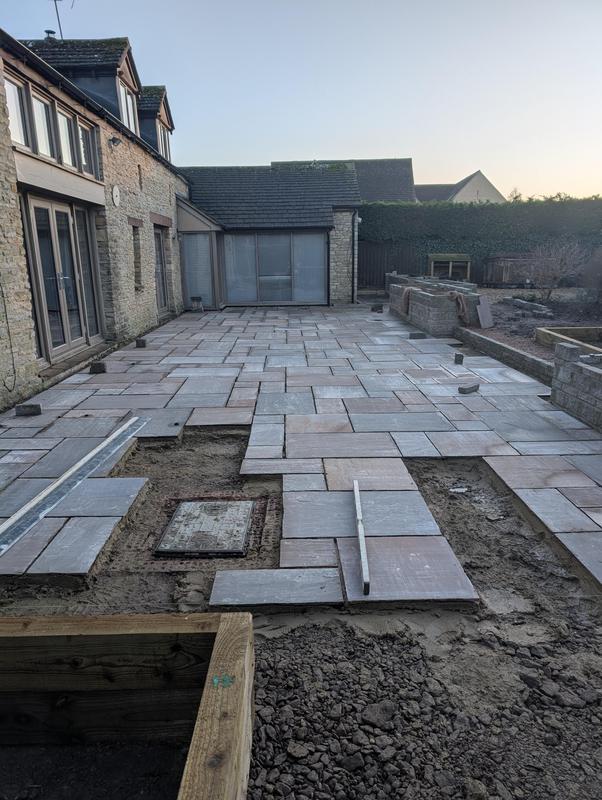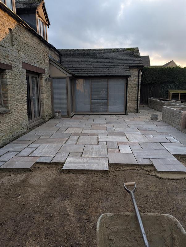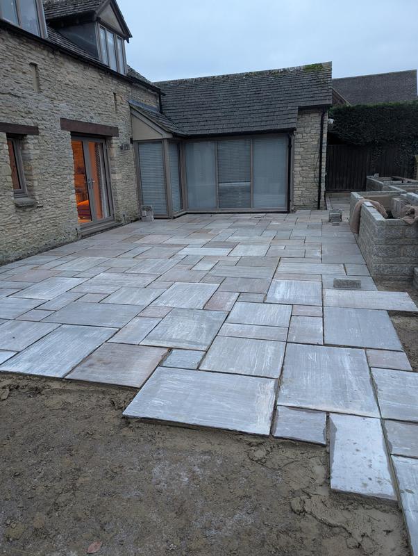 - Indian sandstone patio area under construction