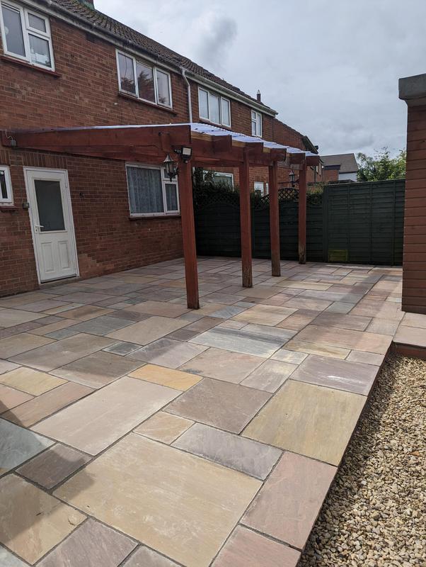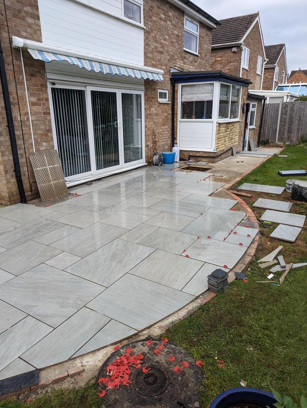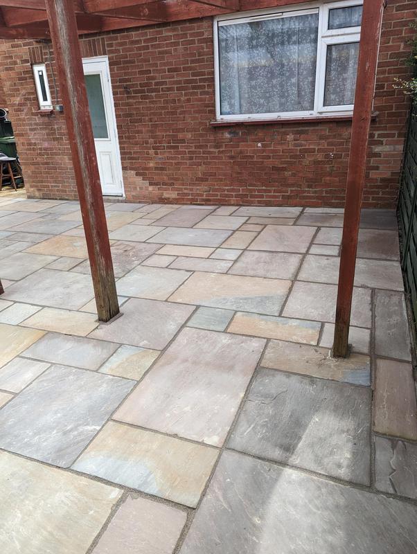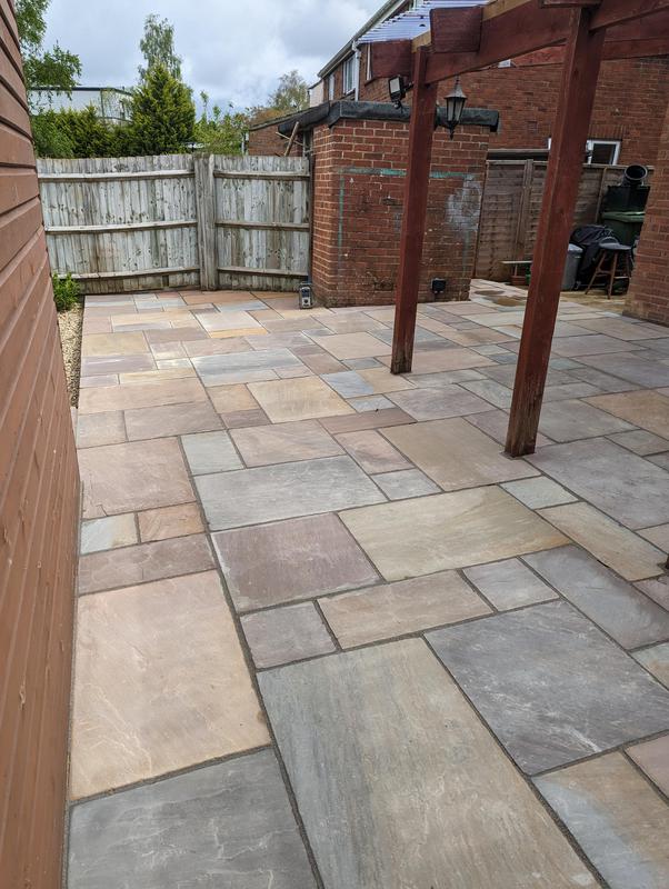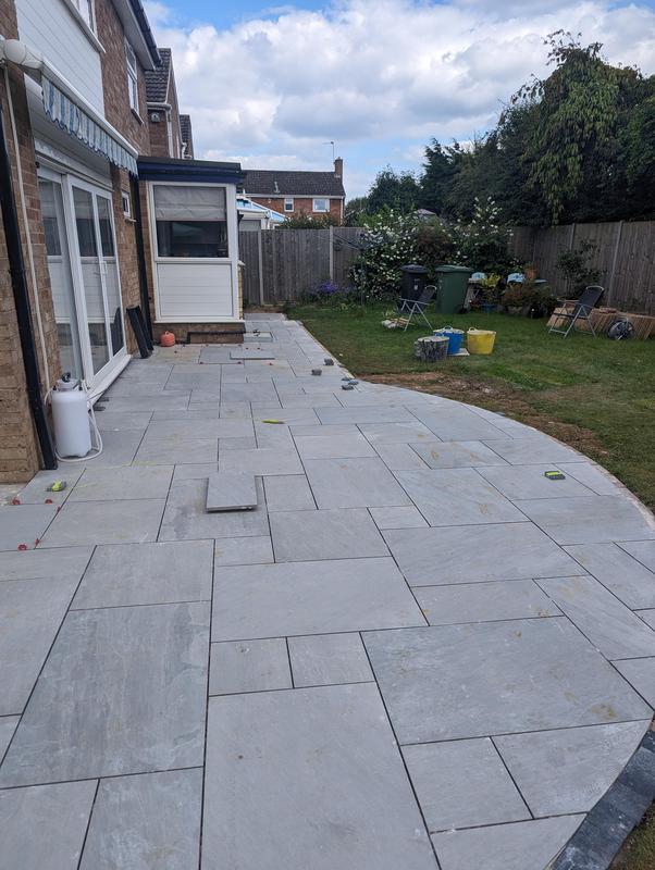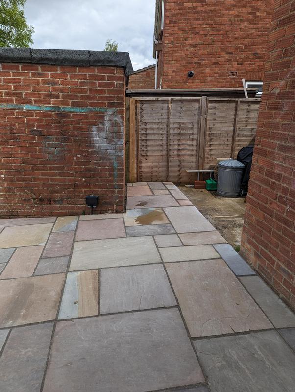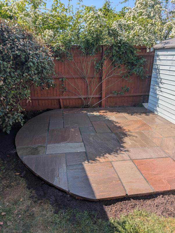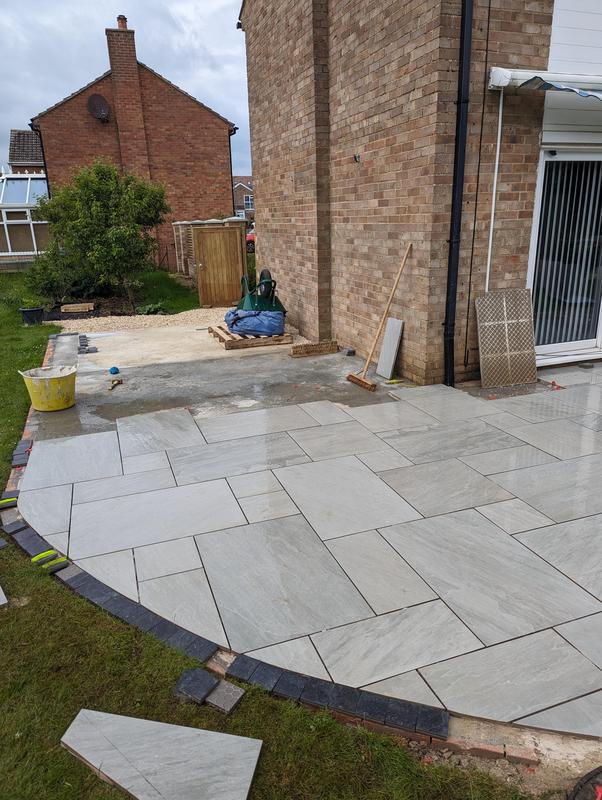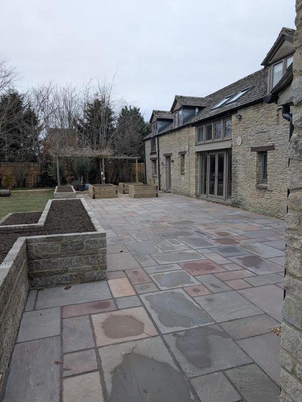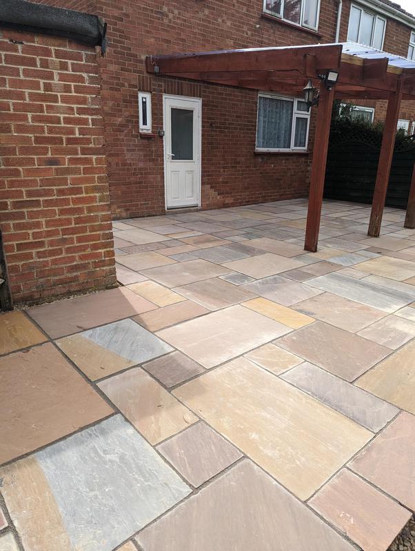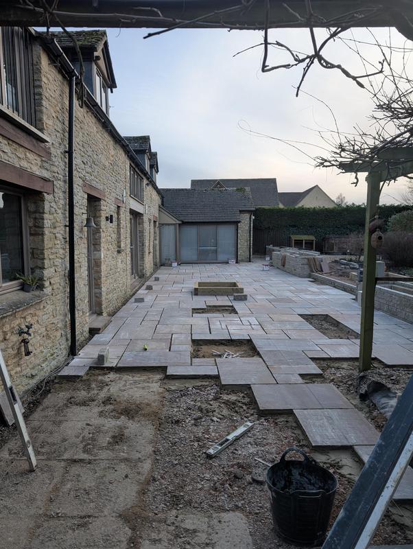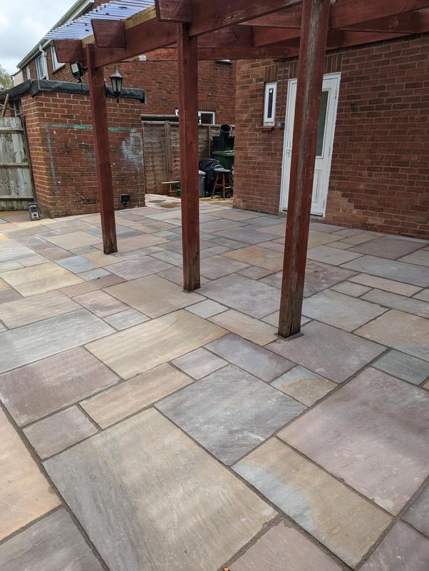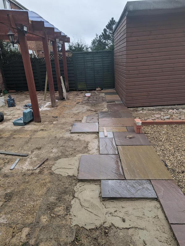 - Indian sandstone patio area under construction