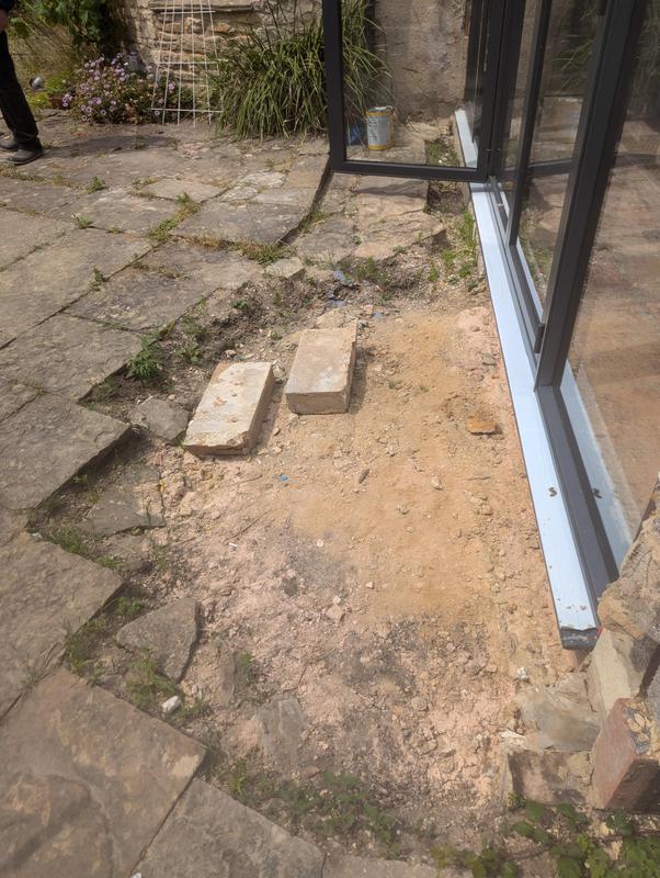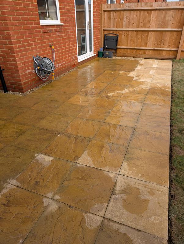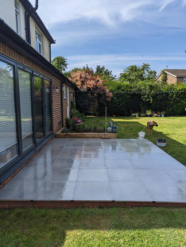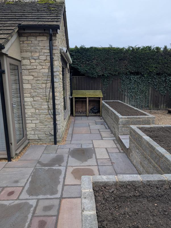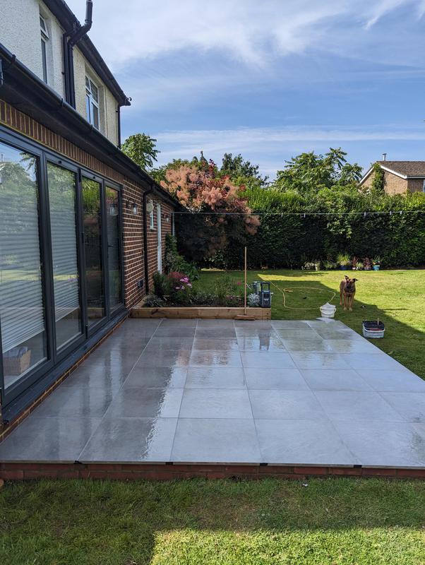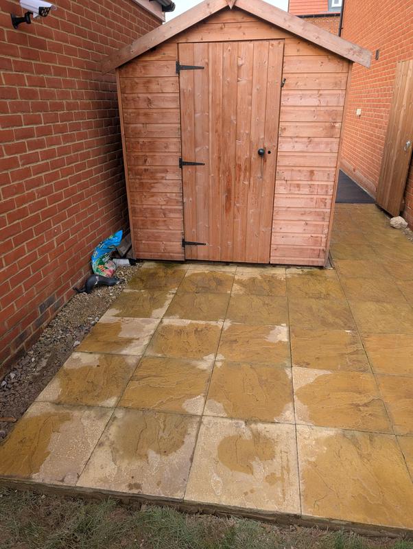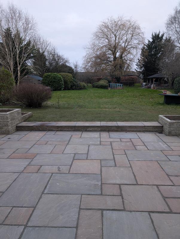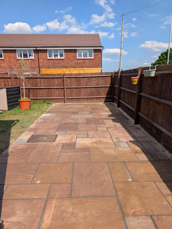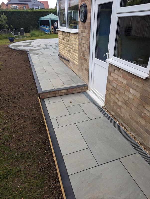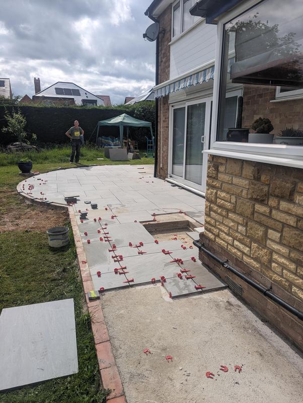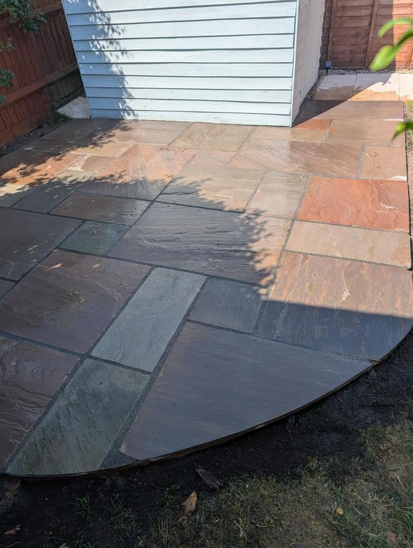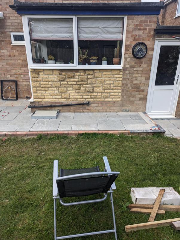 - Indian sandstone patio area under construction