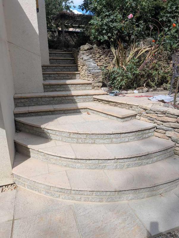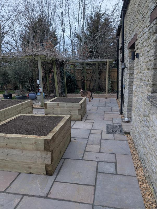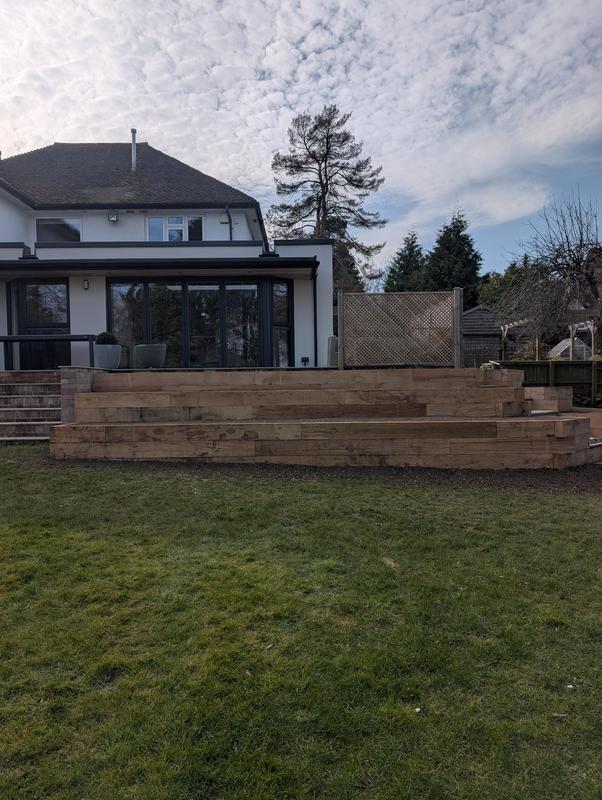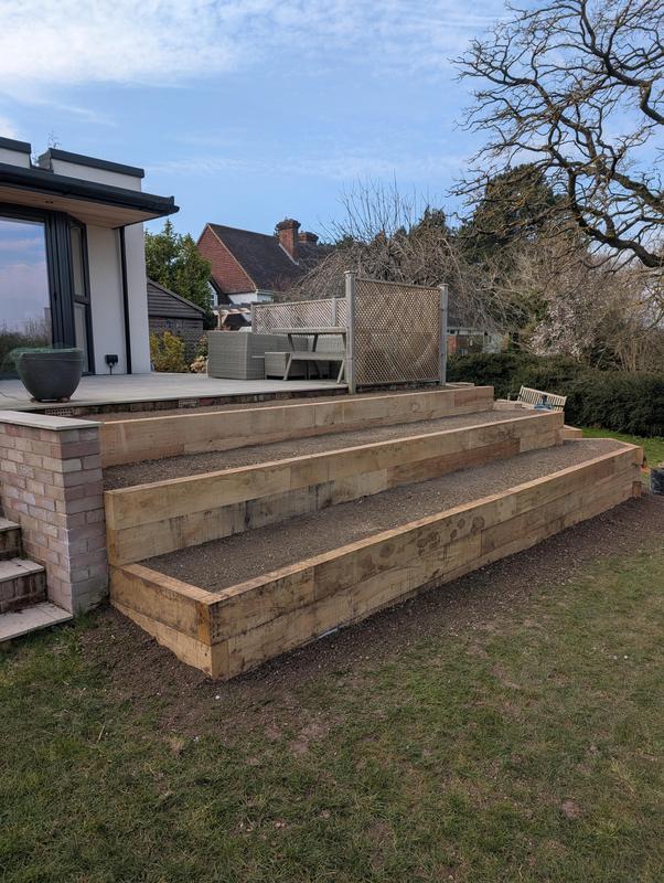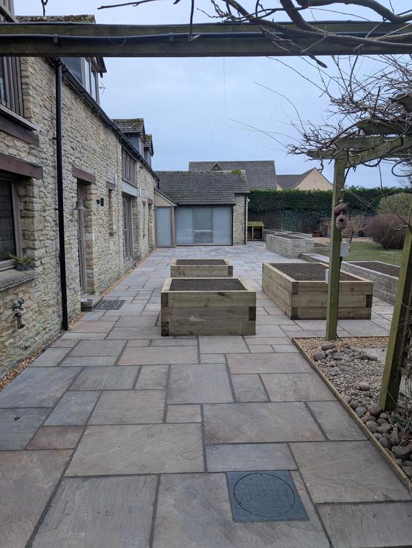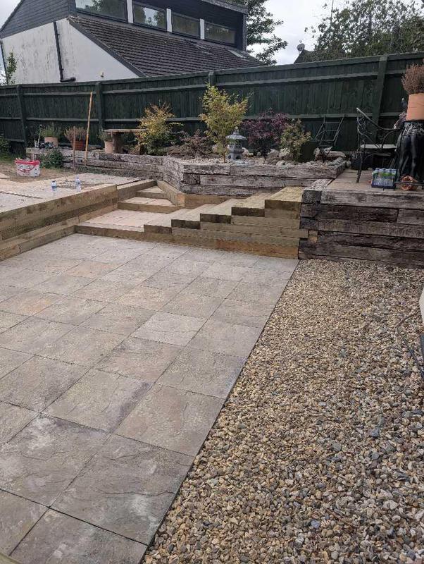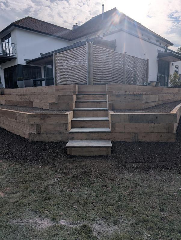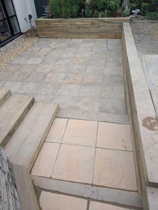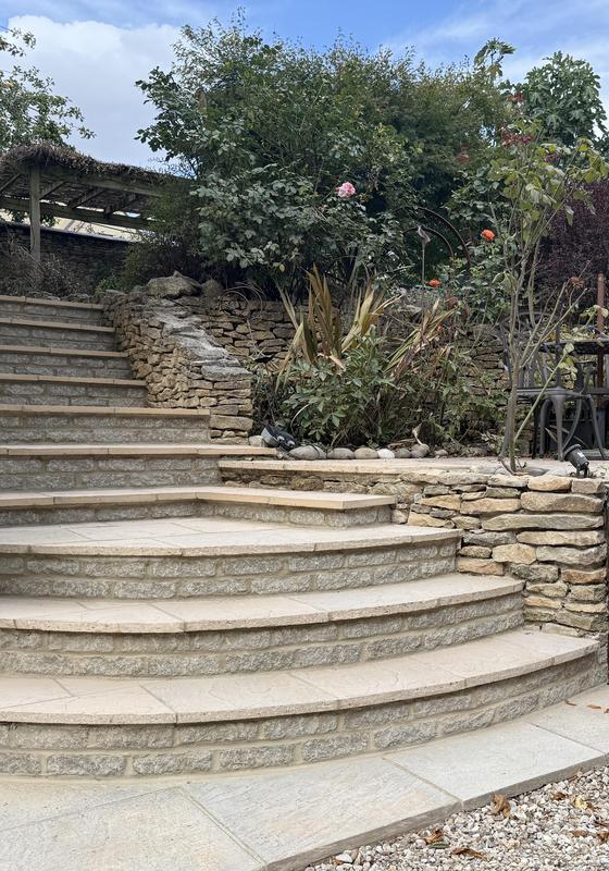 - Sleeper terracing with Indian sandstone steps