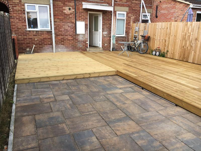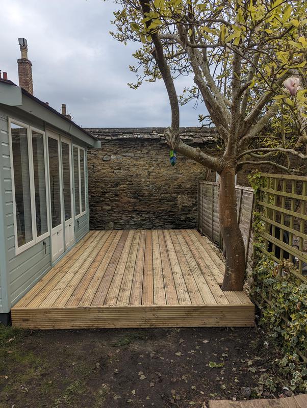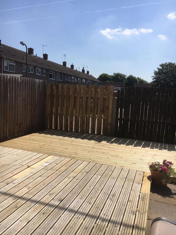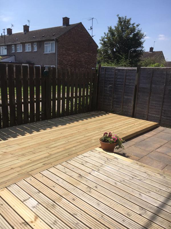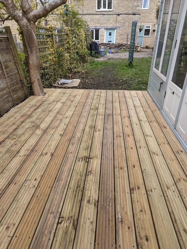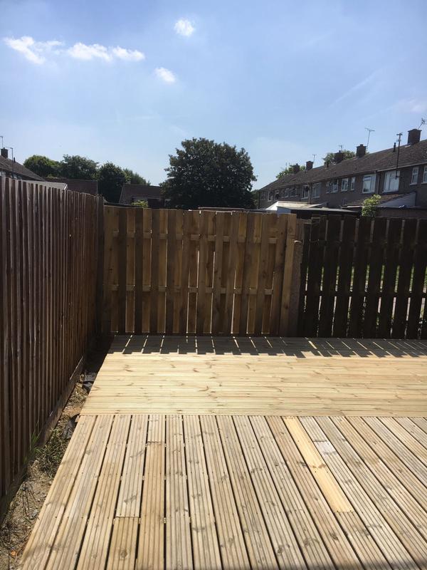 - Decking, patio and fence