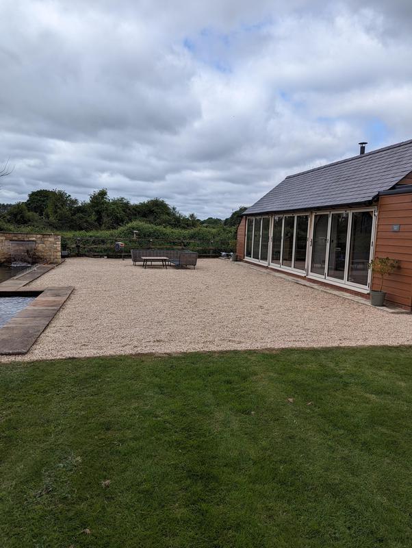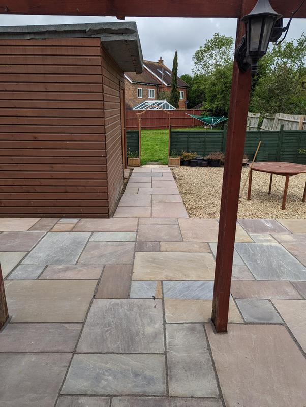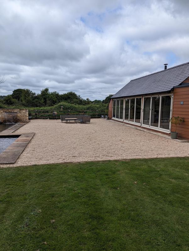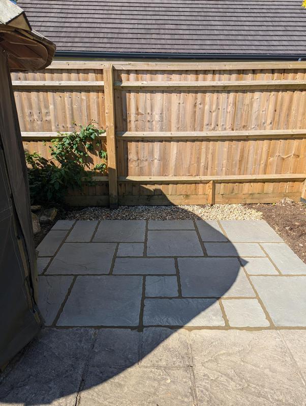 - New gravel area with Indian sandstone step