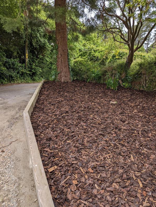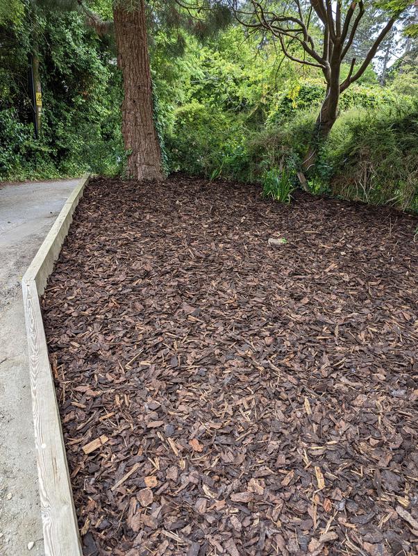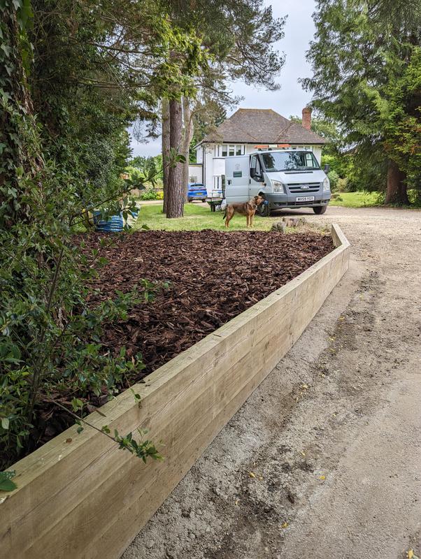 - Sleeper retaining wall with bark mulch