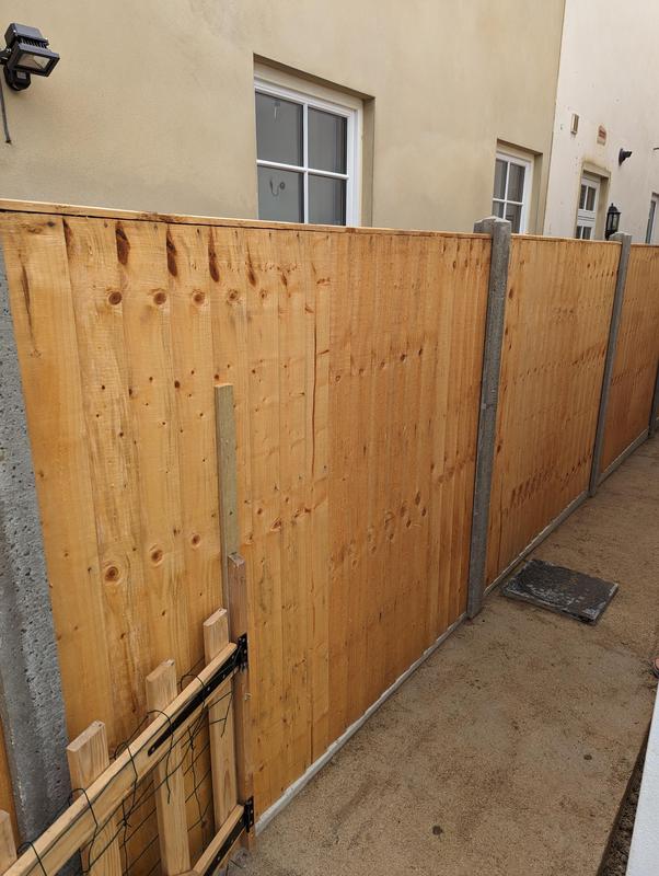 - Closeboard fence panels with concrete slot in posts and concrete gravel board