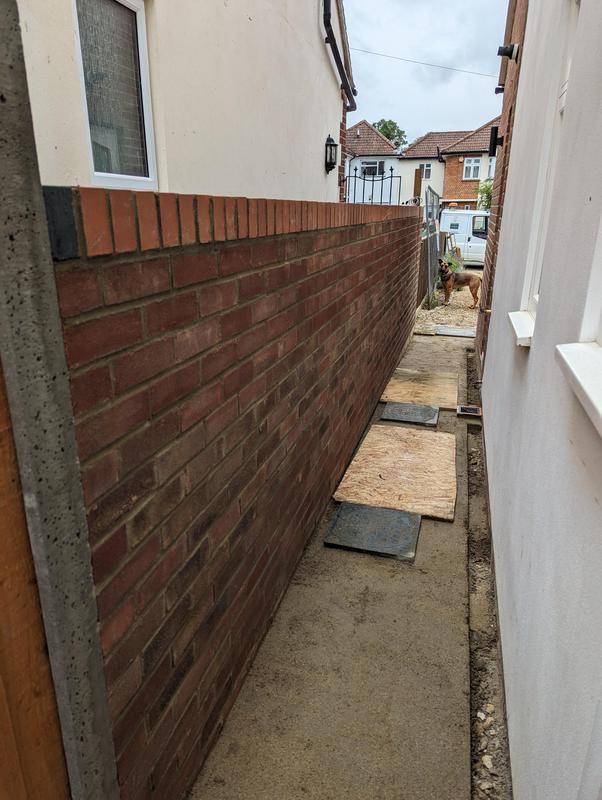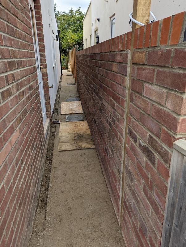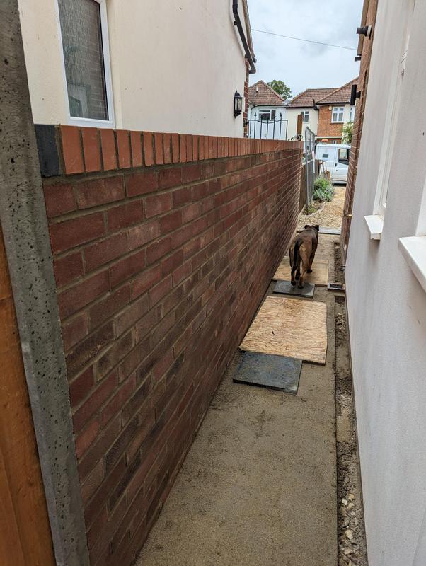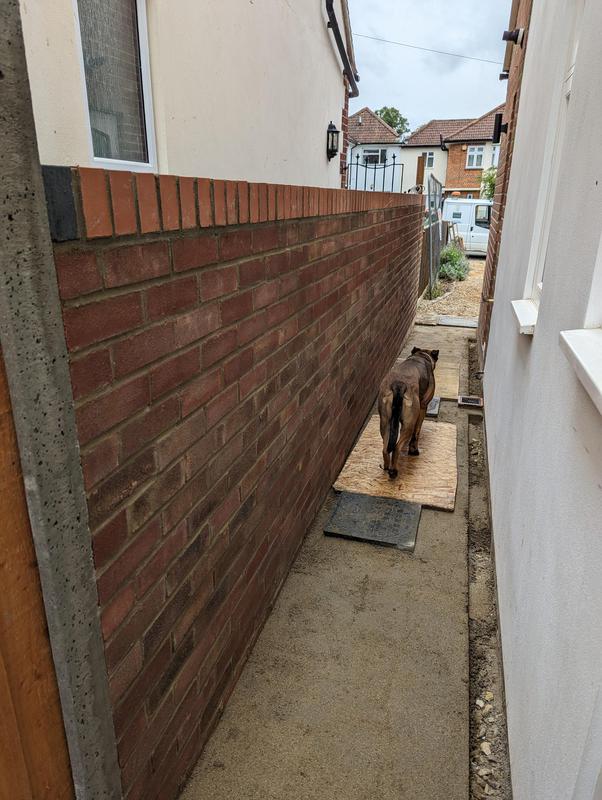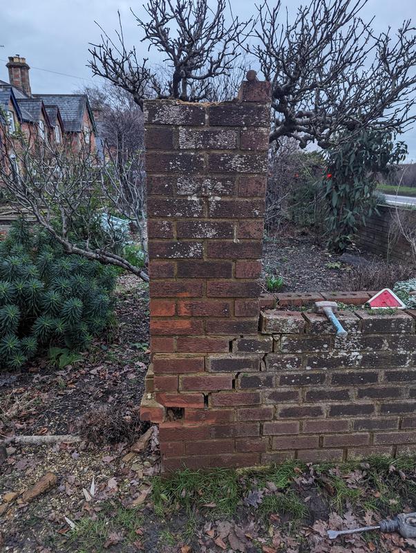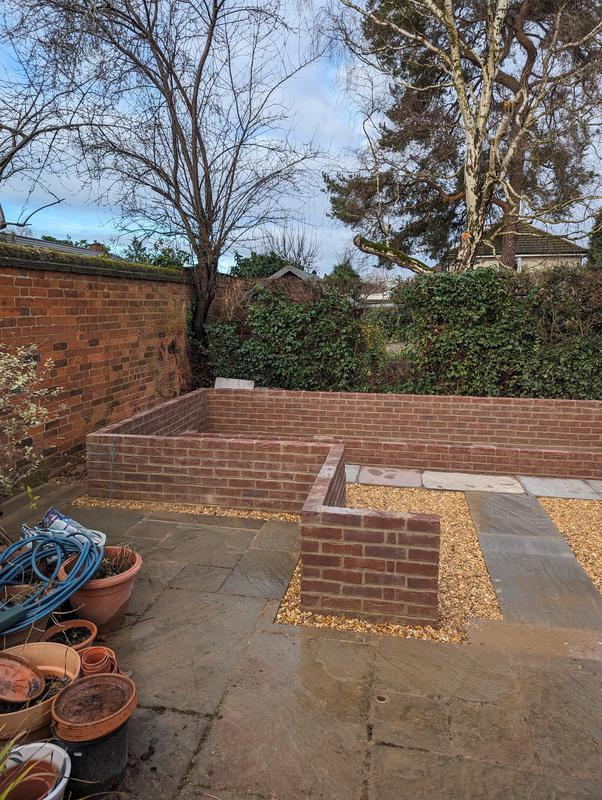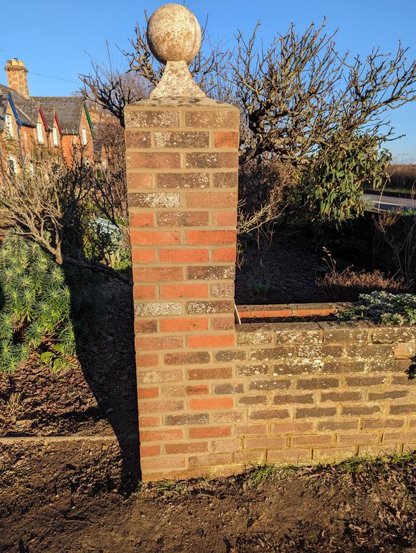 - Garden wall with soldier course of red engineering bricks