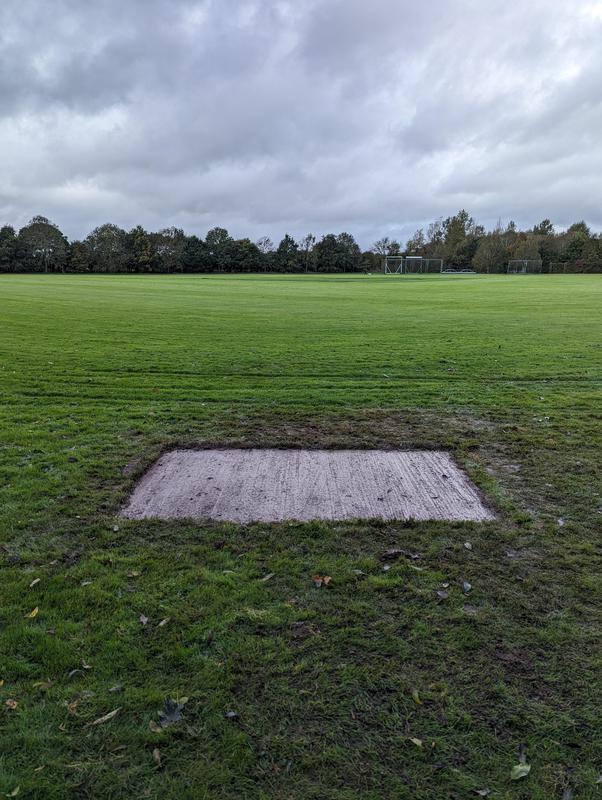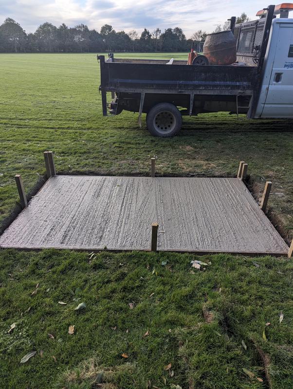 - Concrete base for a bench on a cricket field