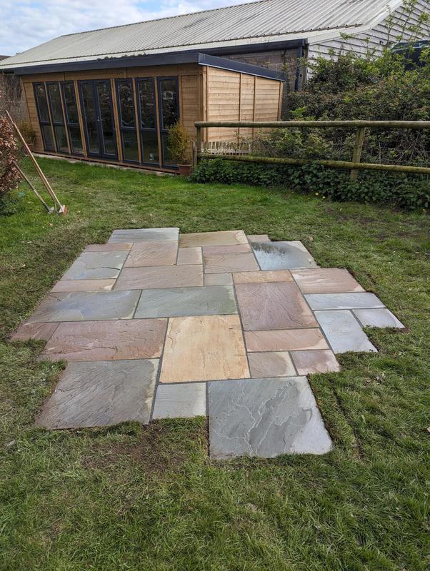 - Indian sandstone layed out for positioning