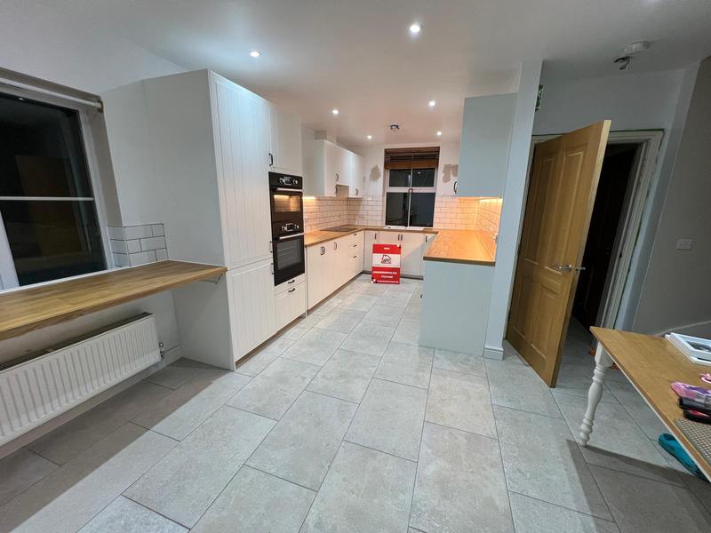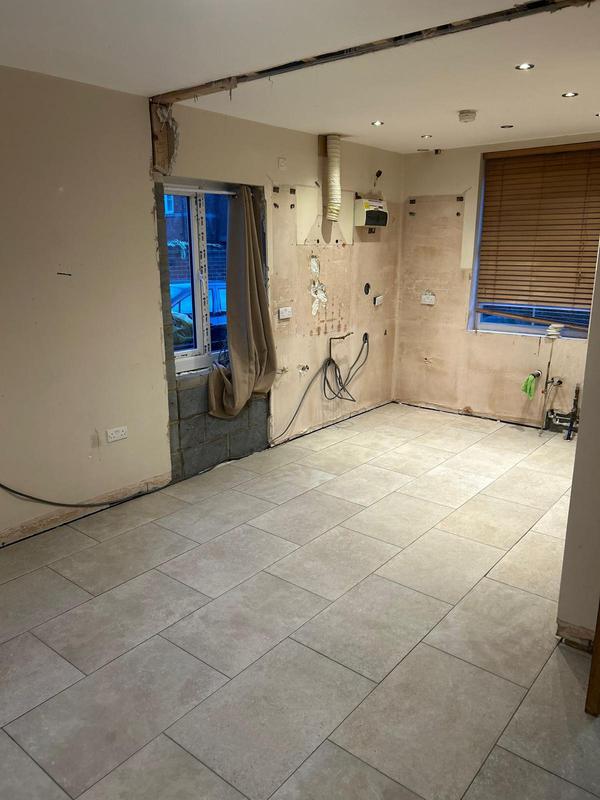 Phil - Image 1 "Andrei and his team were excellent throughout our kitchen/diner combination and renovation. He was quick to visit and provide a competitive quote, he was skilled in the effective dismantling of internal walls and removing/replacing our side door with a bespoke fit window and wall. His tiling work on the floor was excellent providing guidance based on previous jobs on thickness and grout selection. Then brought in skilled labourers to help with both kitchen for and electrics. Andrei replaced radiators for us also doing a great job. He and the team were trustworthy and kind to the kids who were very interested in their work. All round good guys. Would use AA again and would highly recommend them to friends, family and others."