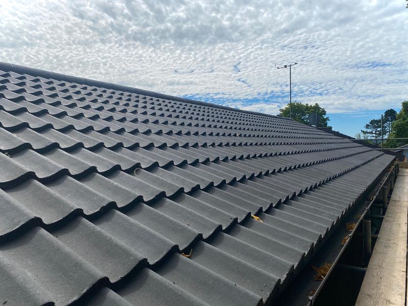 - New roof installation using a Redland Grovebury interlocking tile in Slate Grey.