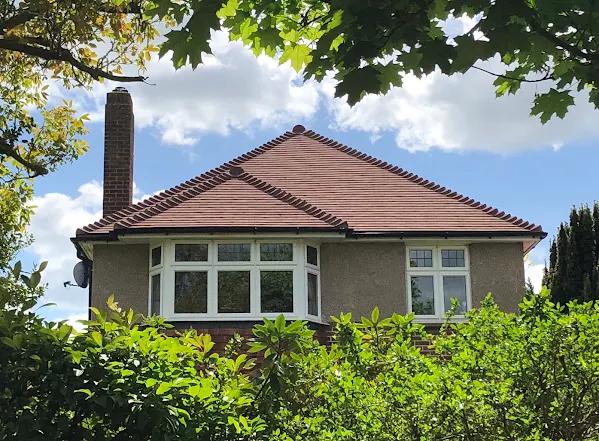 - A new roof installation in a Redland 49 interlocking tile using third round hips in Tudor Brown.