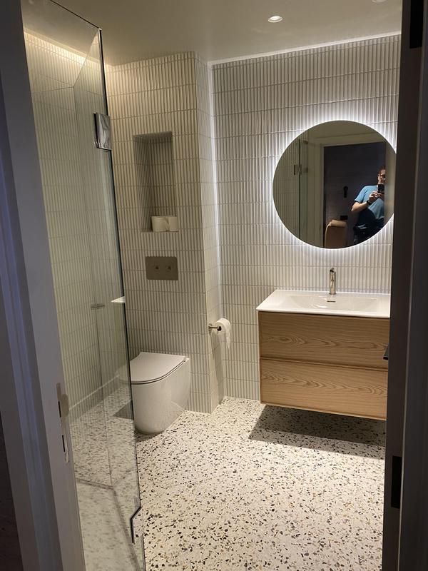 - New bathroom lighting, downlights, LED strip and mirror