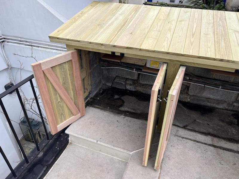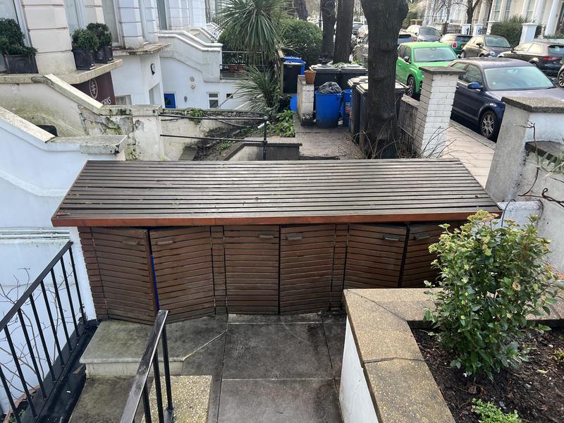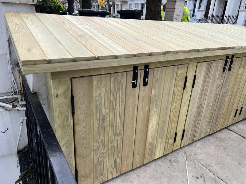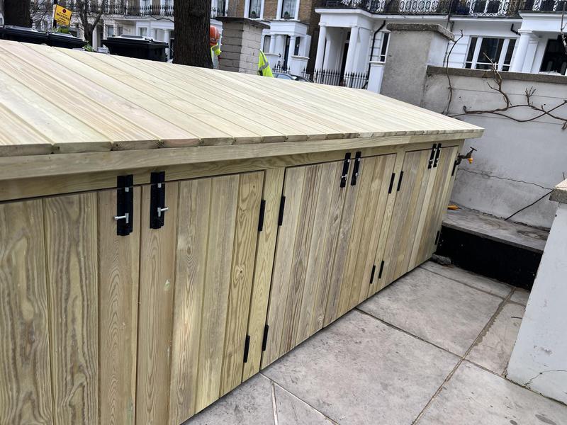 Treated Redwood Bin Storage with 6 Hinged Doors and Tower Bolts in West London