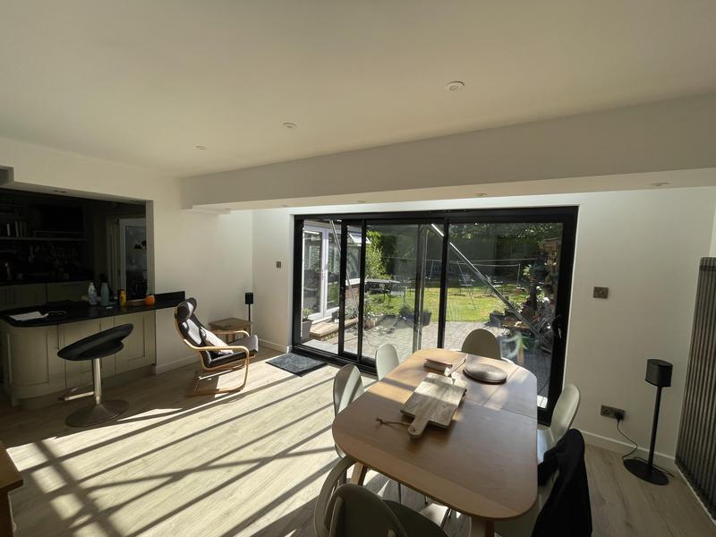 George Cottam - Image 1 "I was delighted with the work completed by Alex and the team who came via a recommendation from a friend. We required two chimney breasts removed, whole house plastering, new kitchen and bathroom and a single storey rear extension (photo). Communication was excellent, timescales were generally met and costs were all exactly as outlined in the initial quote. Every member of the team was professional and respectful and were great to have in the house. All the work has been completed to a high level and we’re really happy with our house now. We would absolutely recommend Alexander Builders to anyone."