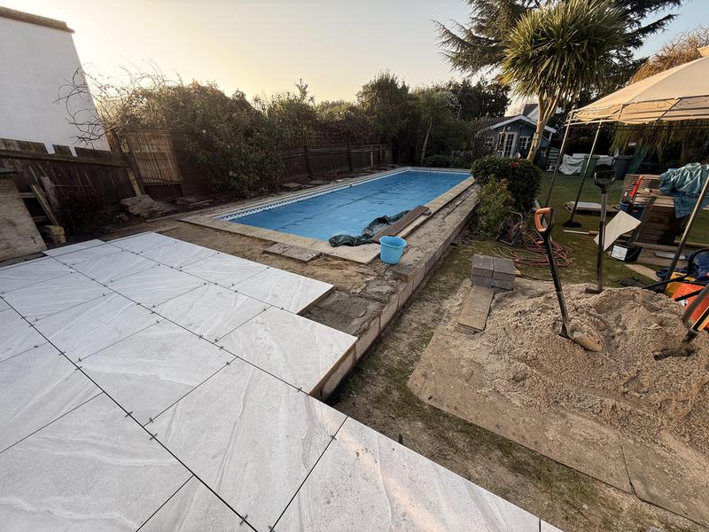 Phil - Image 1 "Dave with Max, Drew & Marshall removed my old patio and replaced with a new patio and pool surround. It has completely modernised and transformed my garden so I cannot speak highly enough of them all. Not only was the workmanship outstanding but Dave worked closely with me throughout to apply and also recommend typical adjustments/improvements to the areas which always happen in the real world. Each day the works was left neat and tidy and, they were all reliable, polite and friendly. I am probably their worst nightmare to work for as I have a strong technical and DIY background so I was quite intrusive and involved throughout the works but they took this in there stride and successfully achieved all my requirements. All financial discussions due to changes were also amicable and fair. Well done guys."