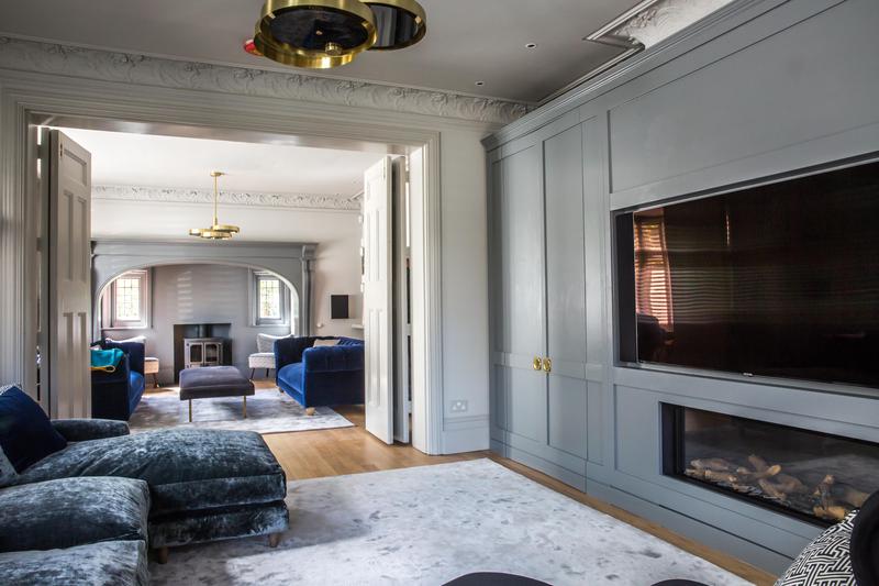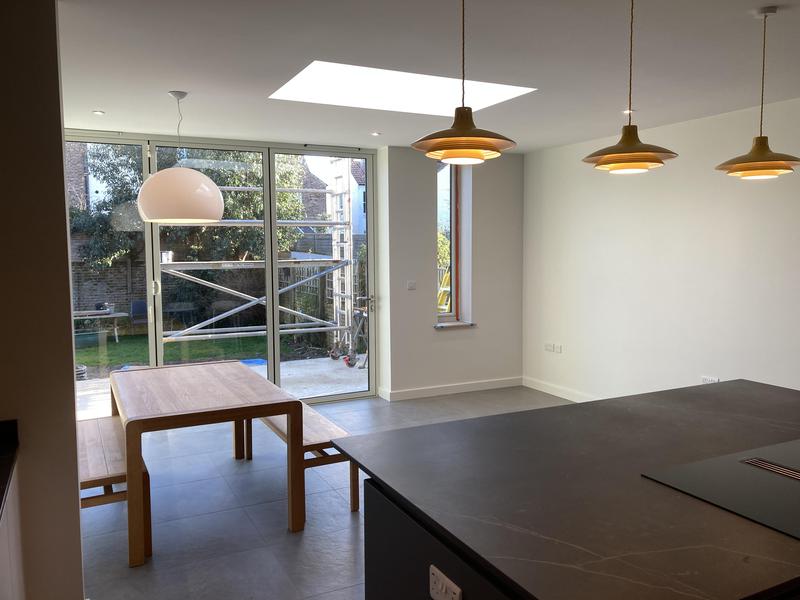 Substantial refurbishment and re-modelling of large house. Removal of rear timber conservatory and catslide glazing and replacement with powder coated aluminium structures. Re-plastering throughout. Forming new kitchen. Complete rewire including Lutron lighting. New boiler, heating and plumbing services including a dedicated hot constant hot water system. Floor and wall tiling, Specialist wallpaper hanging. Decoration and finished internally and externally.