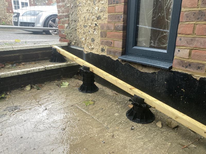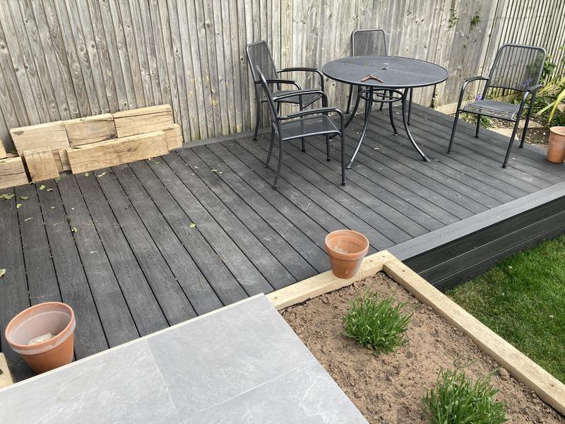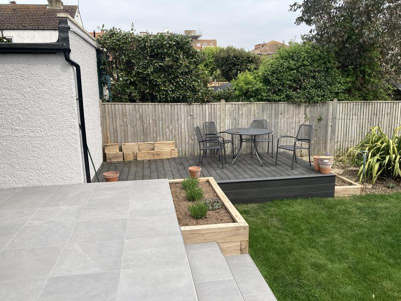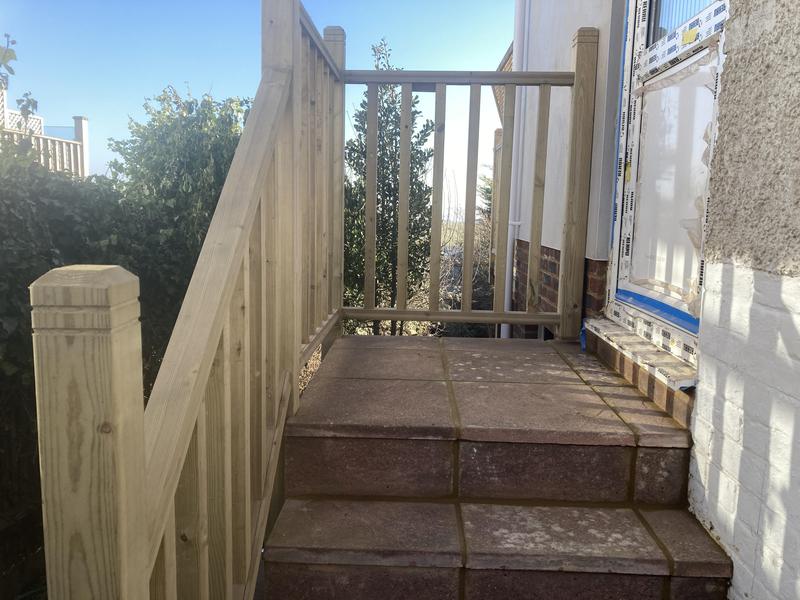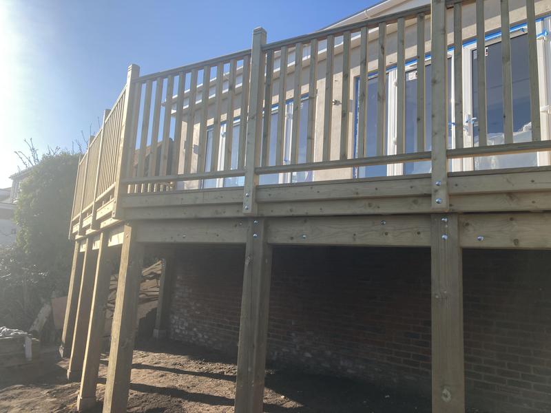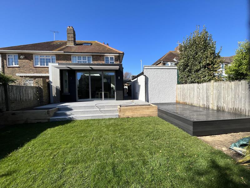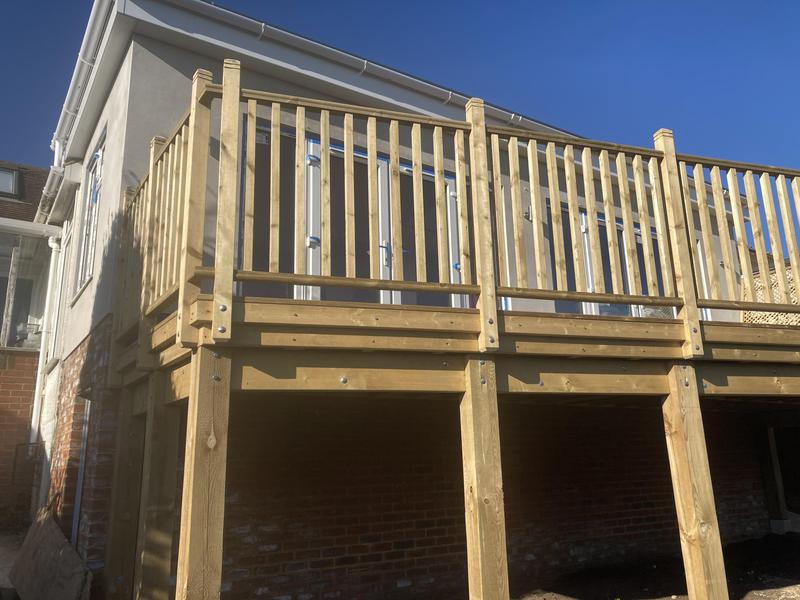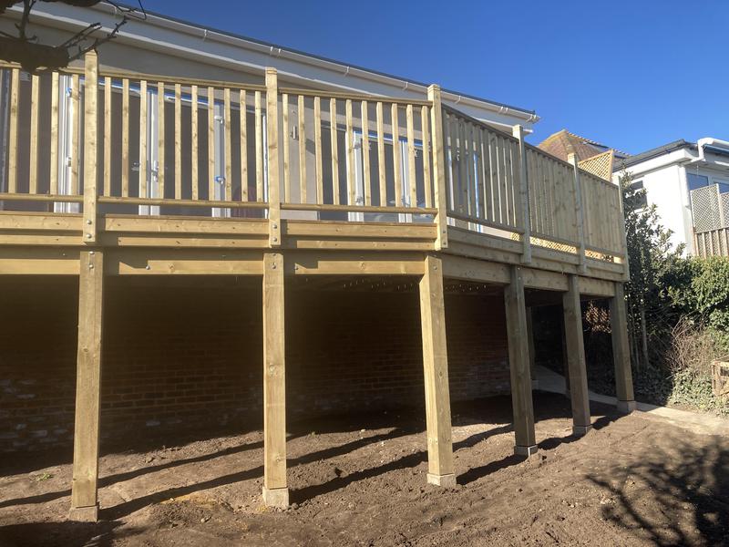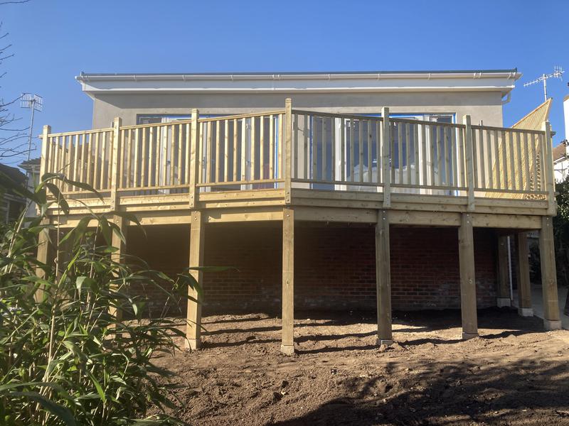Raised Decking, side entrance steps, extension with insulated flat roof