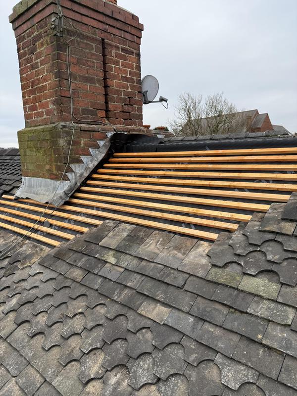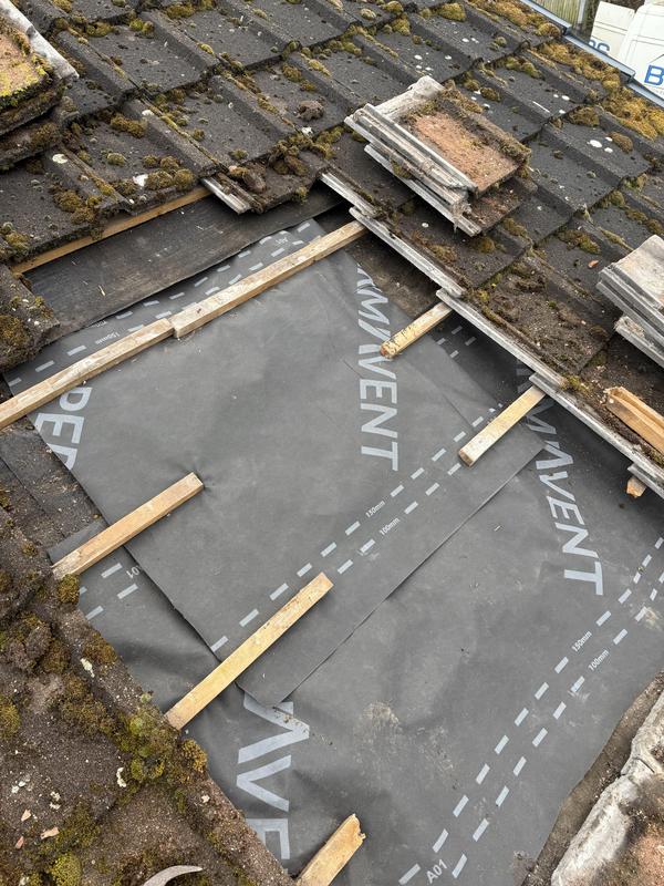 - 100 year old roof had new breathable felt and treated batons and insulation.