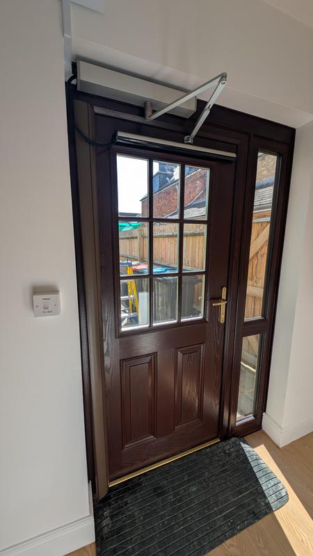 - Replacement composite door with electronic multipoint lock ready for automation.