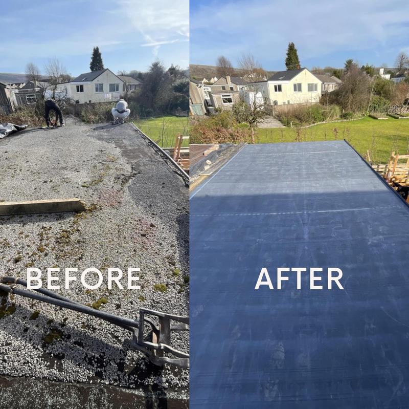 - Before/after new rubber roof