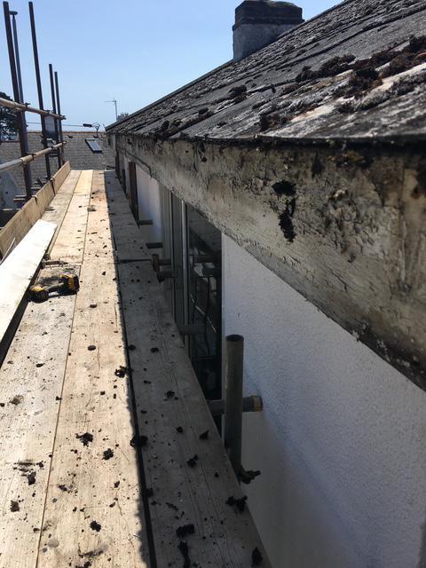 - Removal of tiles to install mahogany facia boards