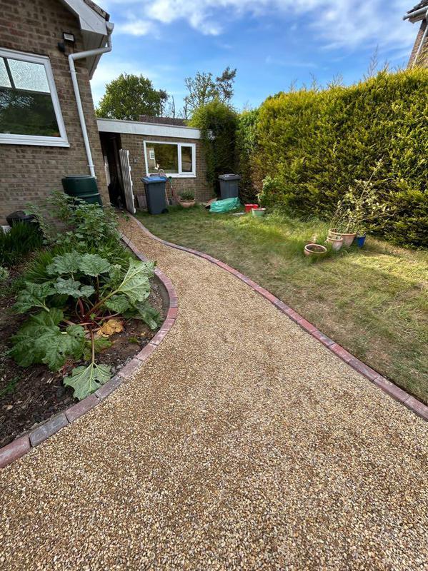 "Awesome job done by an awesome team! The quote was fairly priced I felt, they reassured me the driveway and patio would look exactly how I want. In the end it looks amazing. The driveway was done in Valencia resin and a new cobble blockpaver patio with artificial grass in the middle. Really happy."
