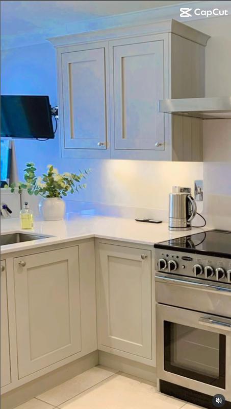 - Beautiful new kitchen. Cabinets sprayed in Purbeck Stone👌