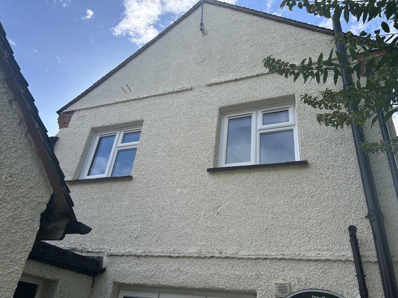- White upvc window into pebbledash/ rough cast made good , ready for painting.