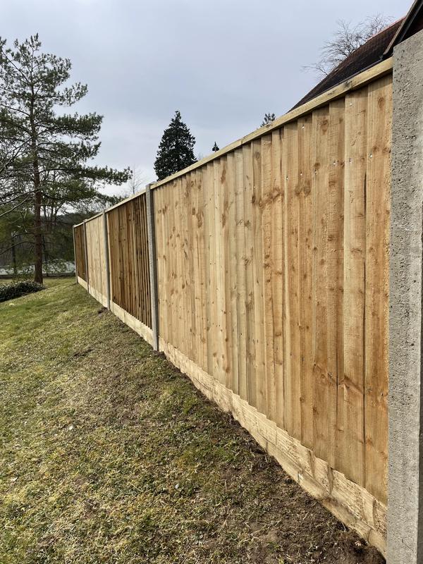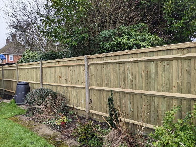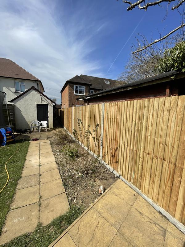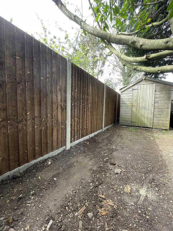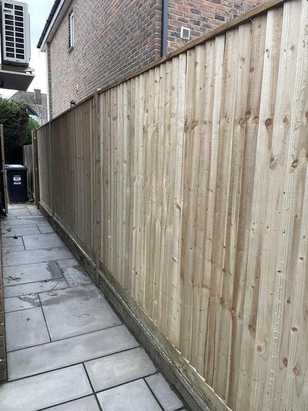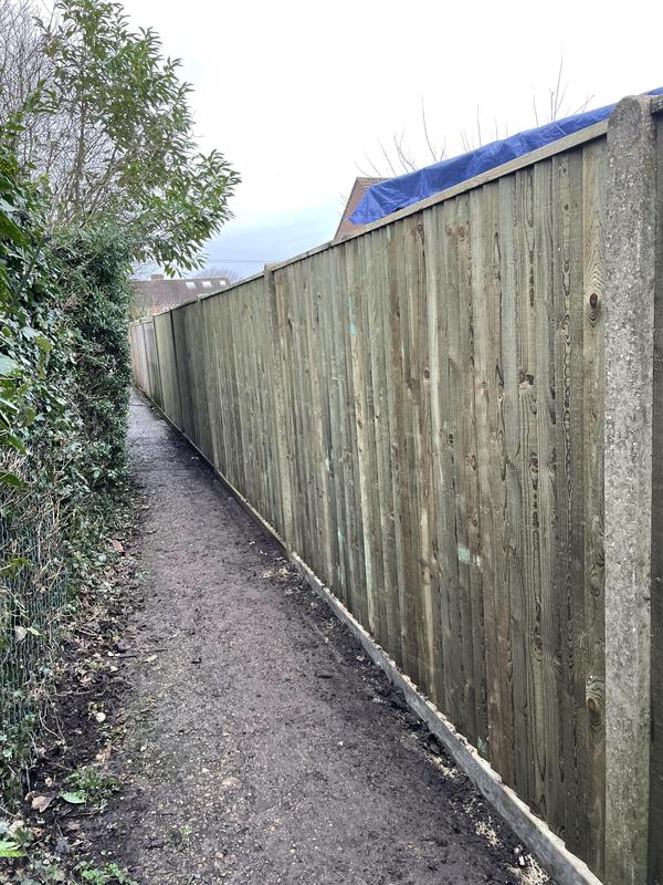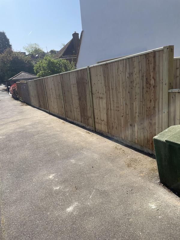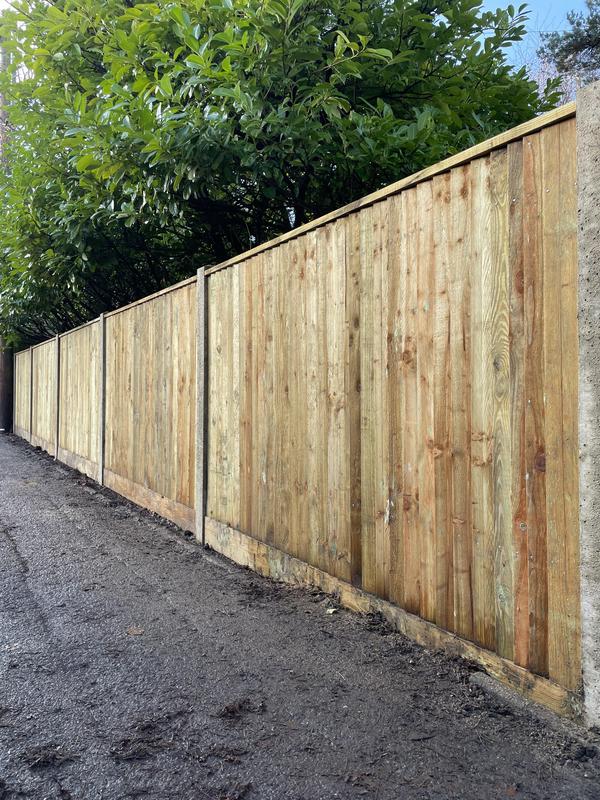 - 1.5m high close board panels installed on 300mm concrete gravel boards and concrete slotted posts. Installed in Kenley.