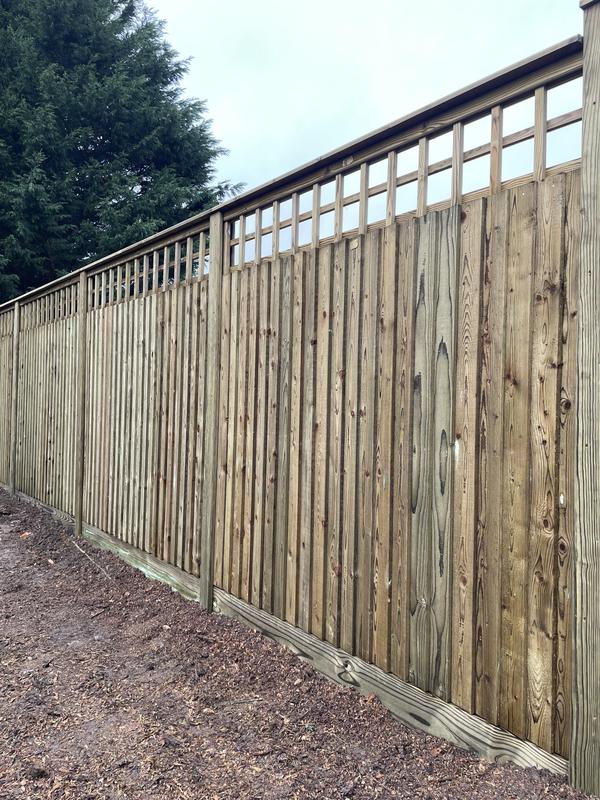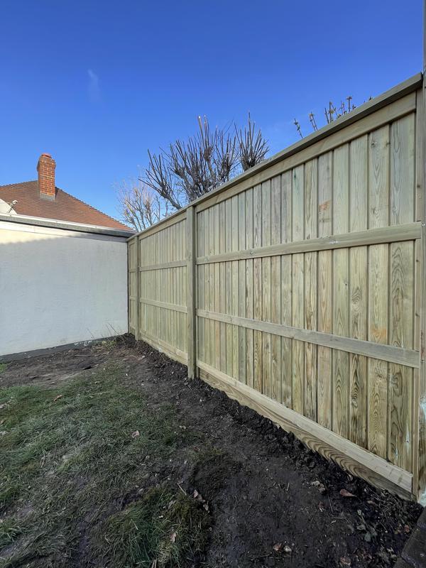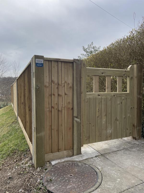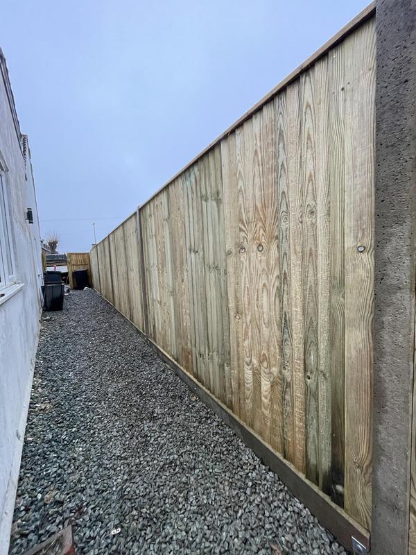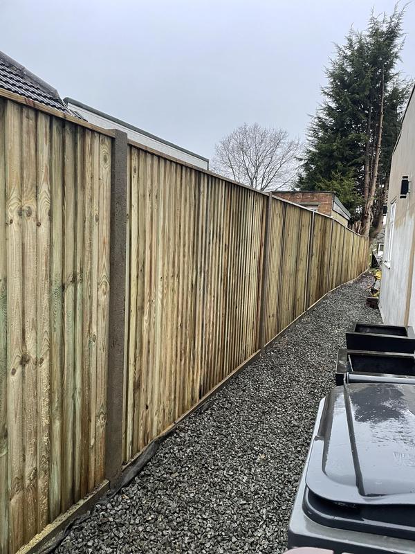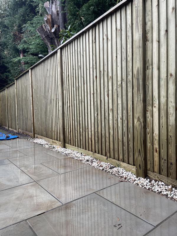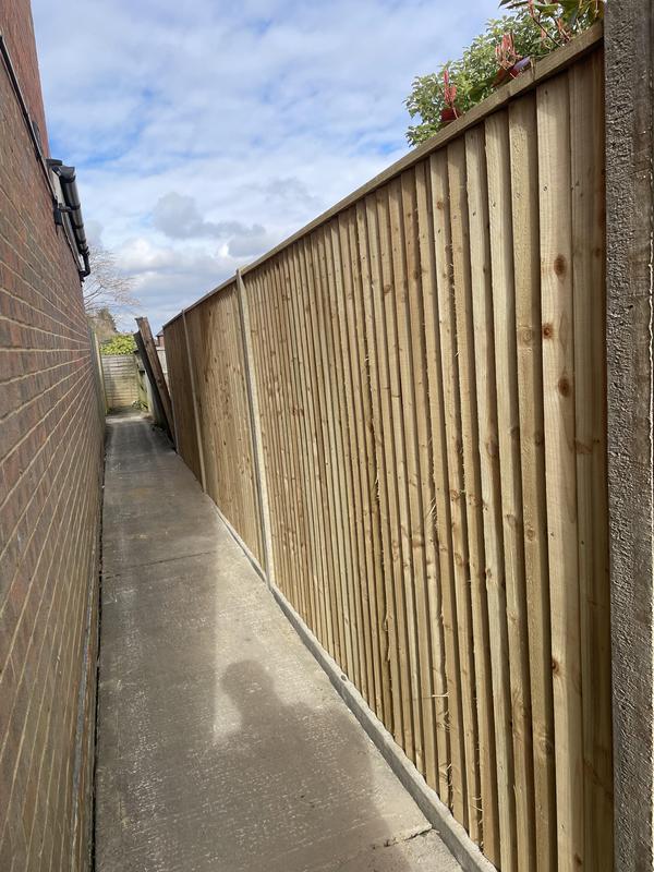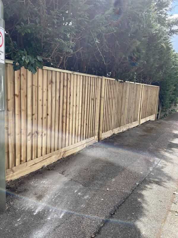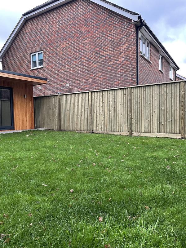 - 1.5m high close board panels installed on 300mm concrete gravel boards and concrete slotted posts. Installed in Kenley.