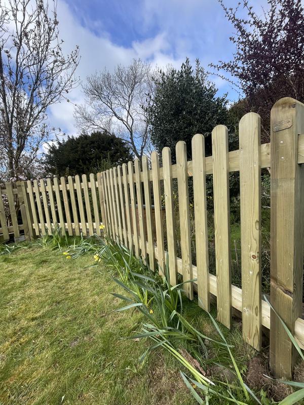 - 0.9m high round top palisade fencing supplied by Jacksons Fencing. Comes with a 25 year guarantee.