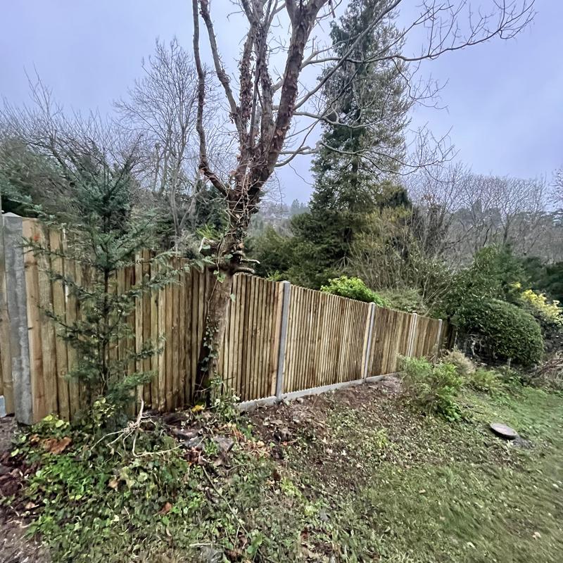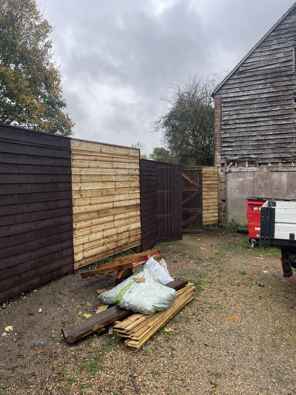 - Feather edge and arris rail replacement whilst keeping the concrete posts as they were still solid so only required timber replacement.