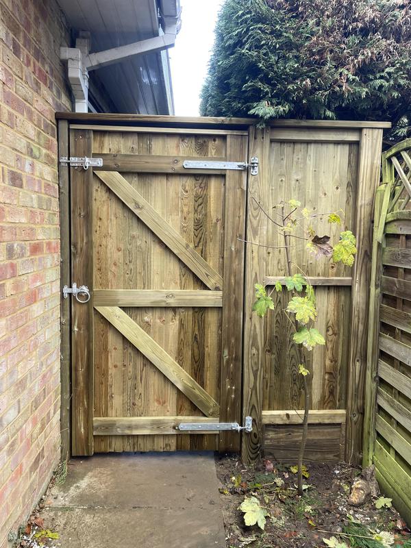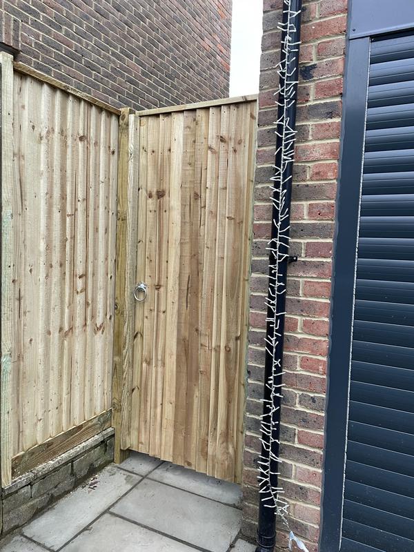 - 1.9m high close board gate custom built to fit a smaller than standard gate gap. Installed in Kenley.