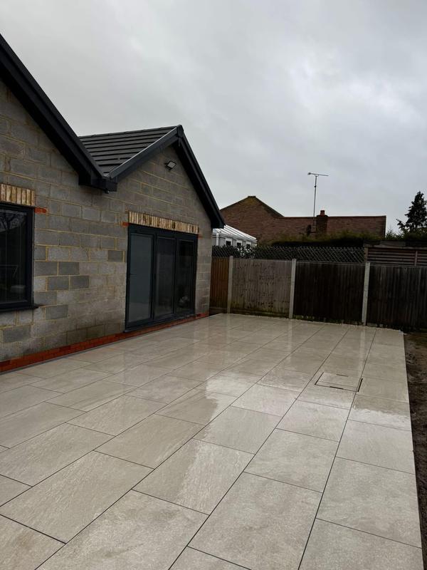 - Castle Beige 600mm x 900mm Porcelain & Premium Grass to this lovely customers garden