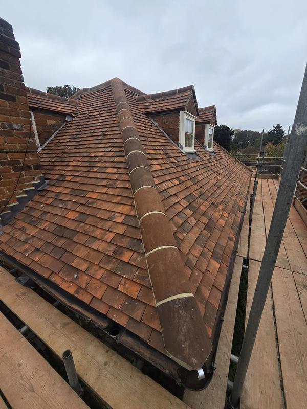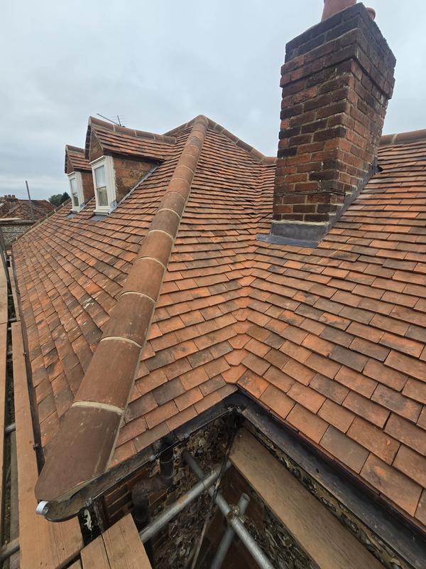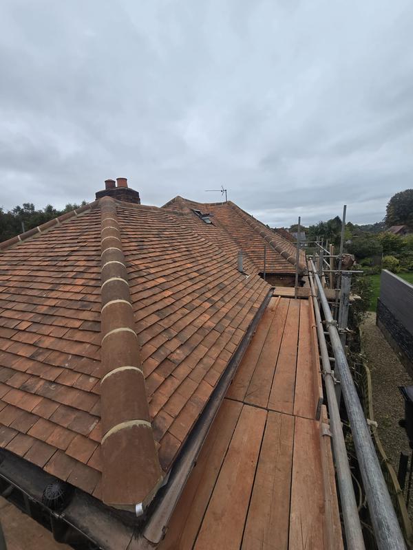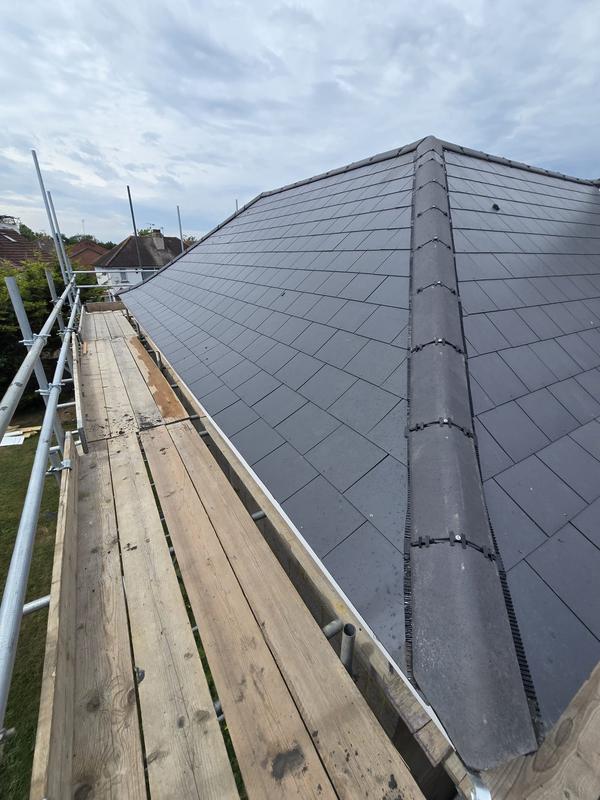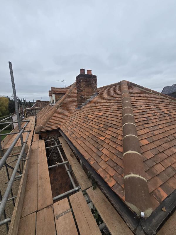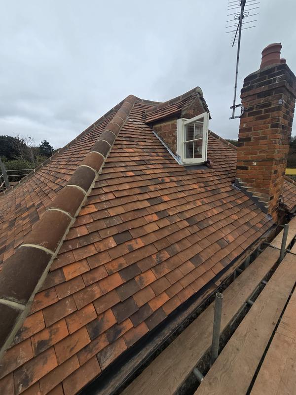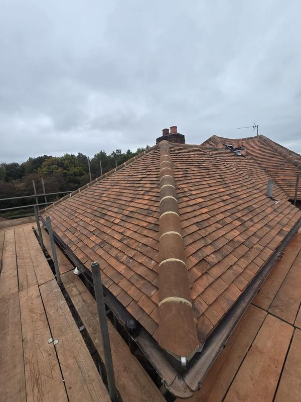 Graham - Image 1 "40 year old roof a couple of edge tiles came loose. Replaced all the cemented tiles down that edge. Quoted within 48hrs of contact, scaffolding up within 5 days, work done a couple of days later. Everything went smoothly, the team of 3 arrived on time completed the job and cleaned up thoroughly afterwards. Couldn't ask for any better. Reccomended by my handyman."