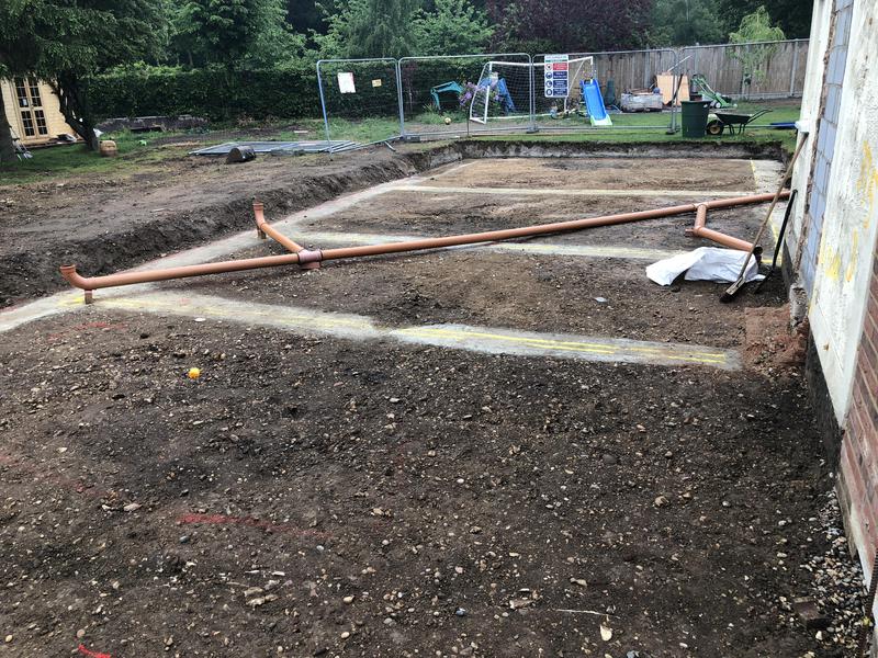 - footings concreted and drainage laid out before stabilizing Oaktree