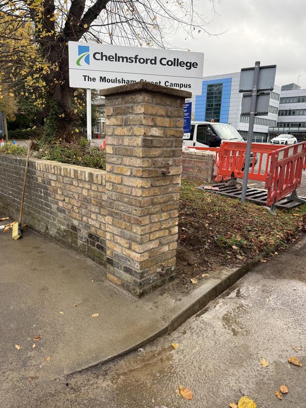 - Chelmsford college rebuilt wall and pier after damage by a vehicle