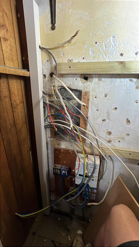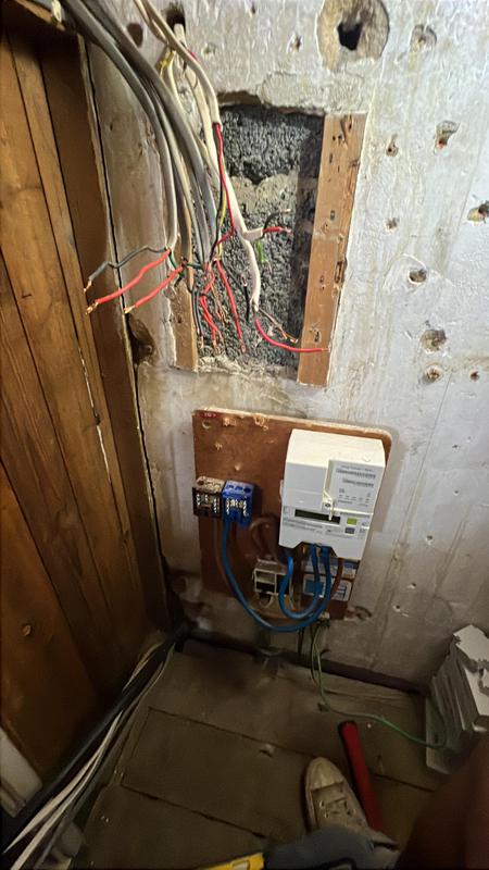 - Re-routing cables in trunking ready for boarding for fuseboard