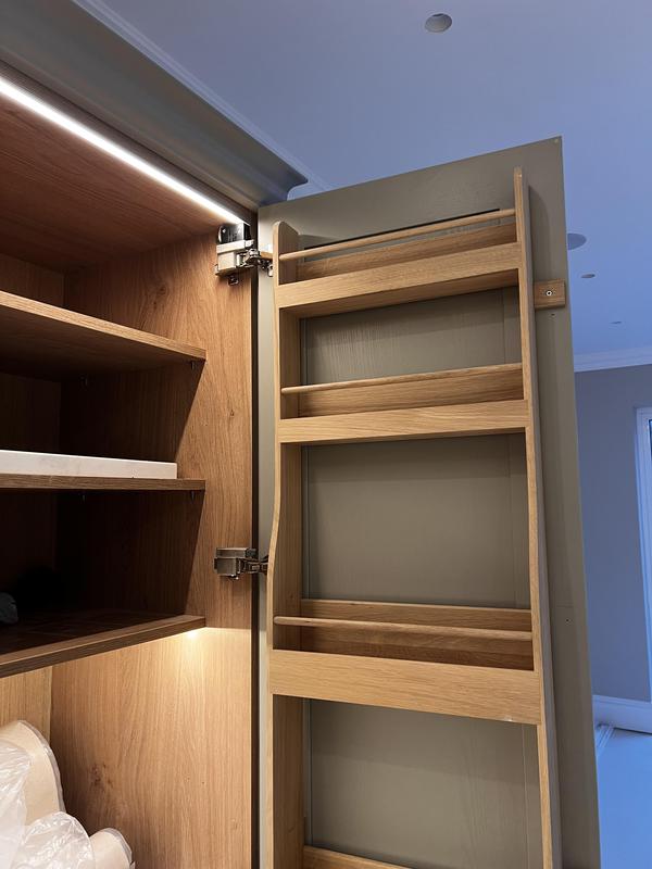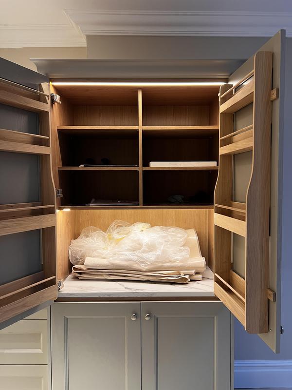 - Pantry unit with slim LED profile light via door contact switch so all the lovely customers glass jars will be illuminated when the doors are opened.