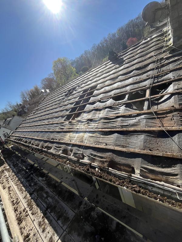 - Roof in need of new felt & battening. After removing the tiles revealed the state of the original felt.