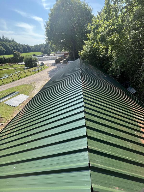 - Metal sheets all fitted ready for ridges.