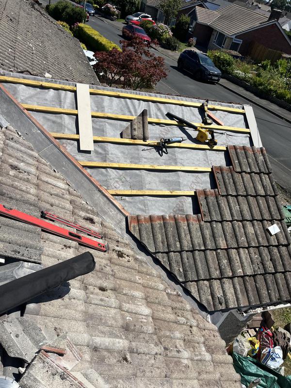 - Completed roof with new breathable membrane felt, battens & tiles on the one side as requested.