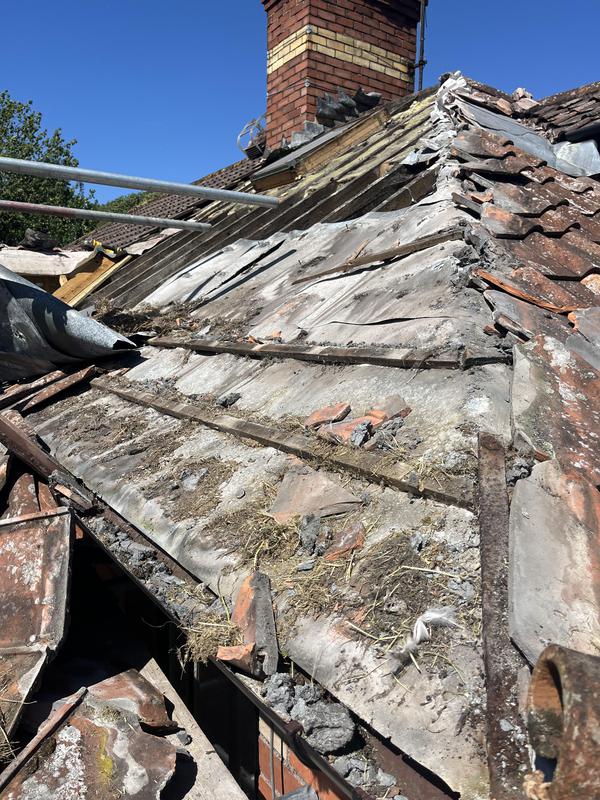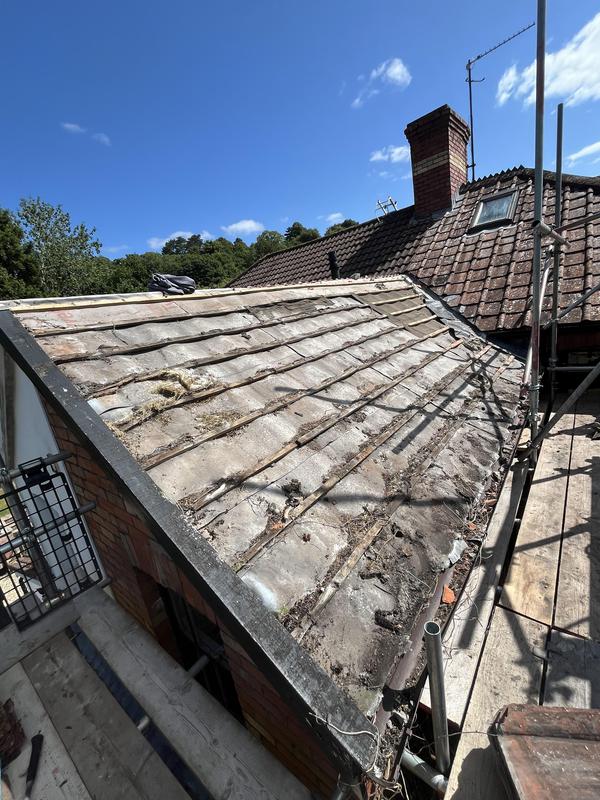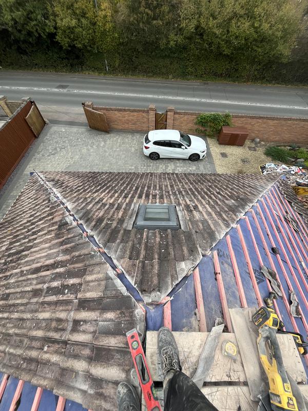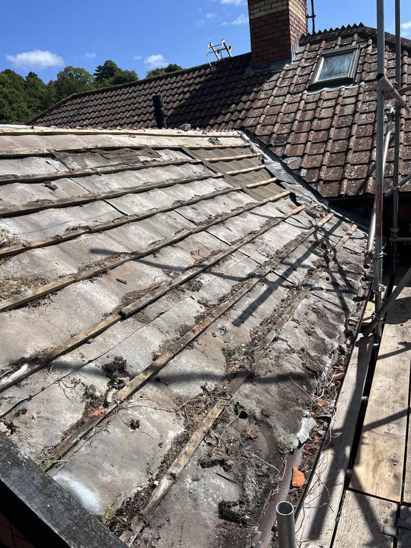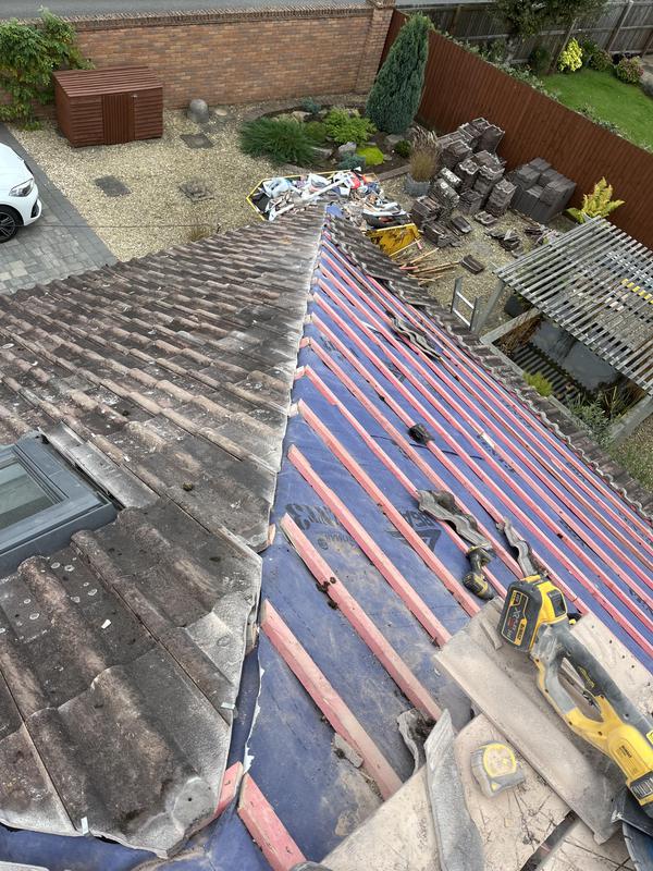 - Before removing the tiles on the roof in need of new felt & battening.