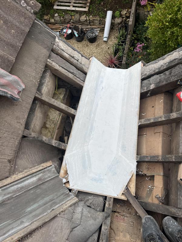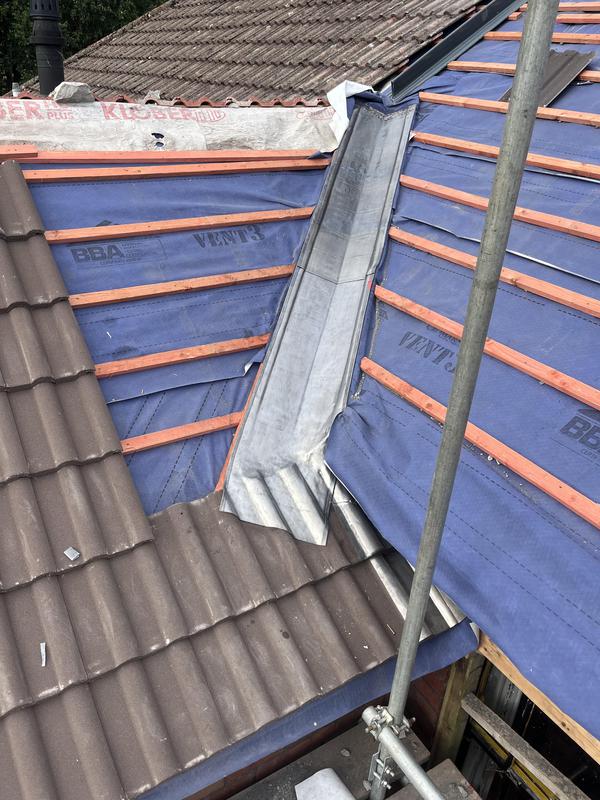 - New lead valley ready to be tiled in.