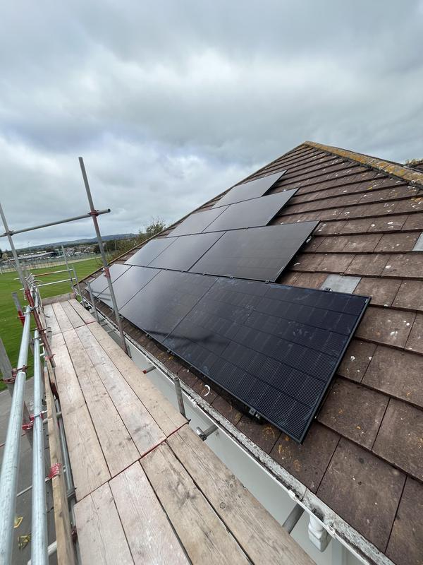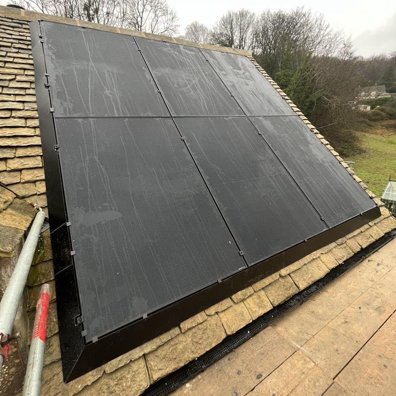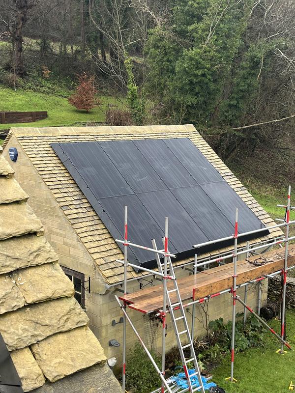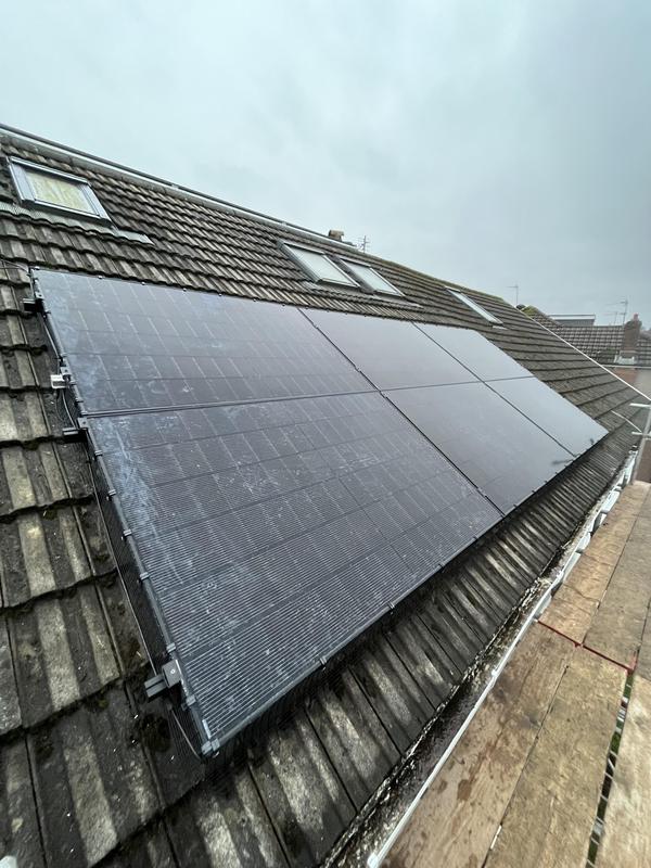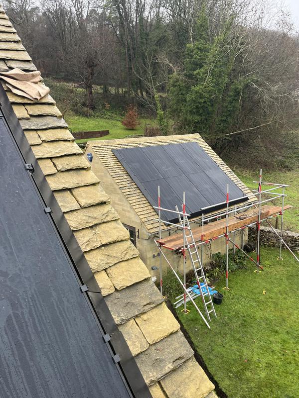 - Vertical solar panel install on Cotswold tiles.