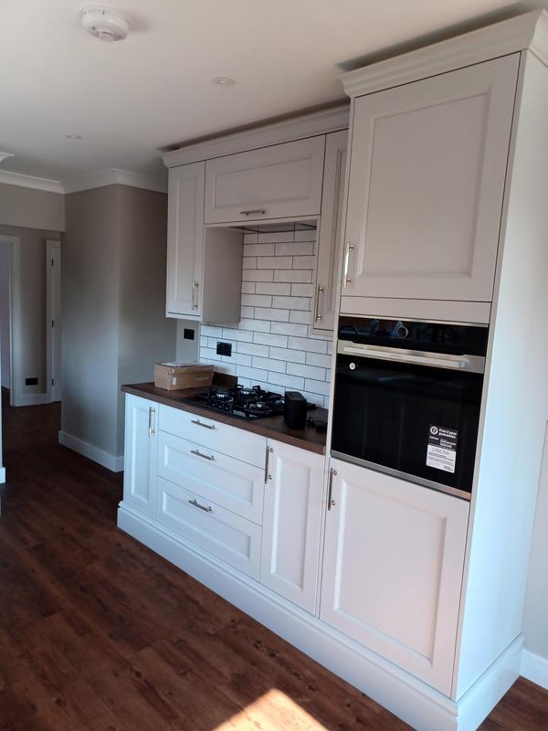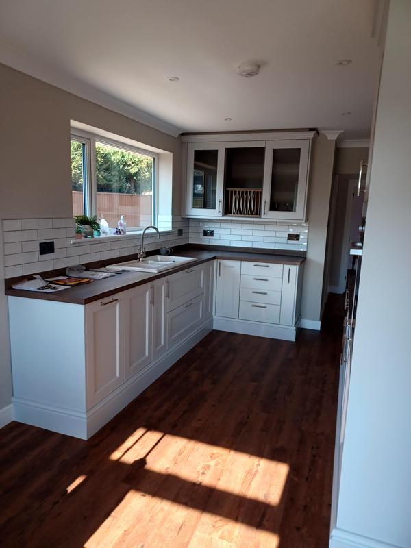 Denise - Image 1 "Nigel and his family came to our home and completely transformed it, all to a very high standard and at our request. Nigel gave great ideas and was very patient and understanding. Our home needed a complete rip out. Nigel provided us with a new re-wire to ensure safe electricity, insulation in every room, replaced all ceilings, plastered all walls, fitted a new kitchen to an extremely high standard, new bathroom/wet room, replaced all internal doors new front door aswell as back door, created a new fire place with brick effect, new utility room amd cased in our stair case and painted white. Nigel restored our parquet flooring to a very tasteful standard. Nigel and his family were clean and tidy and kept in contact with us with progress every week. We are so pleased with the work he has done we are looking forward to having Nigel back next year to renovate our garden. Thank you Nigel and all that made our home so beautiful."
