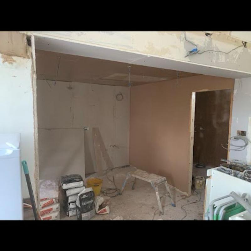 Keith Till - Image 1 "Repairing damage to kitchen ceiling due to water ingress from wet room , overboarding and skim finish , new light fitting to be done , not a very good pic I’m afraid ! Wouldn’t hesitate to use again for any future work we need doing , which we will …"