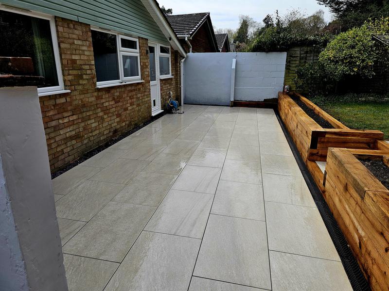 "Mr Pope gave one of 5 quotes for a medium sized porcelain patio with steps and doors opening He was quicker to visit site straightforward in his assessment clear in ideas listened to us and gave good competitive estimate. Which he stuck to we had no hesitation in confirming him for job Darren and team arrived each day (7 days)punctually or texted If any delay. Respected us and the property. Took away all rubbish and supplied our choice of tiles . All the work was tidy and of excellent calibre he was open to discussion and even changes throughout the process and we found them totally honest and reliable. We are very pleased with our new patio and can’t thank them enough Needless to say everything was left neatly and tidily We would certainly employ again and have already recommended to friends and colleagues. 5 STARS"