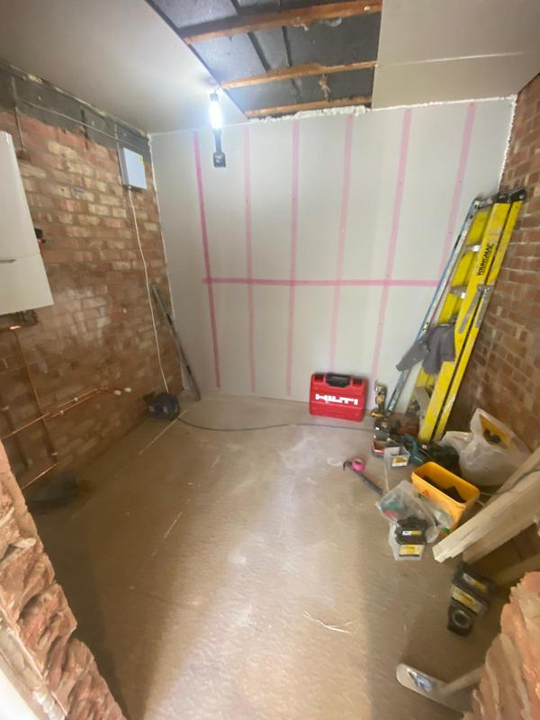 - Magnetic plaster done on this cellar conversion that is going to be customers home office.