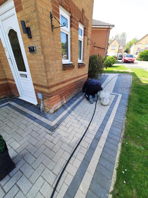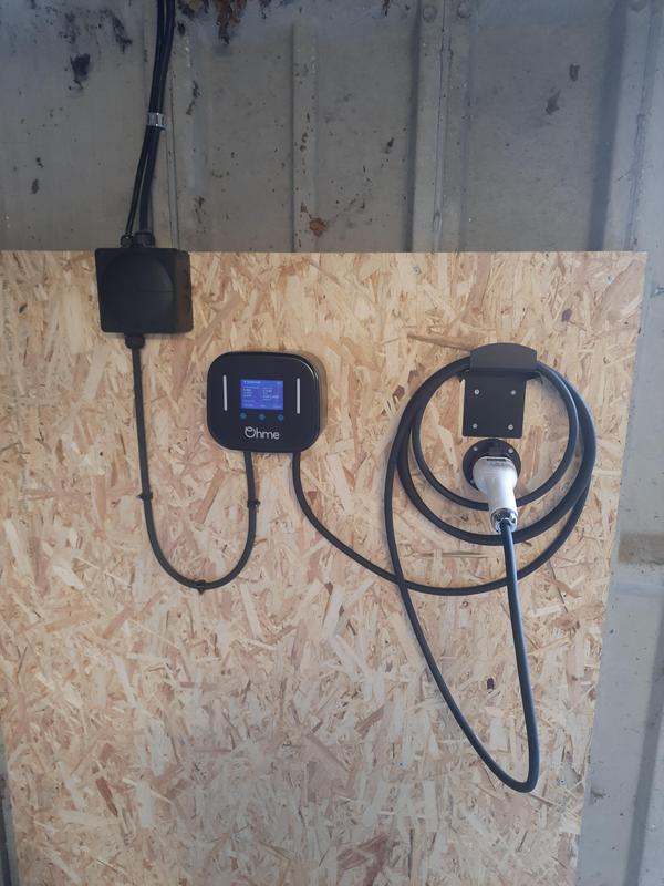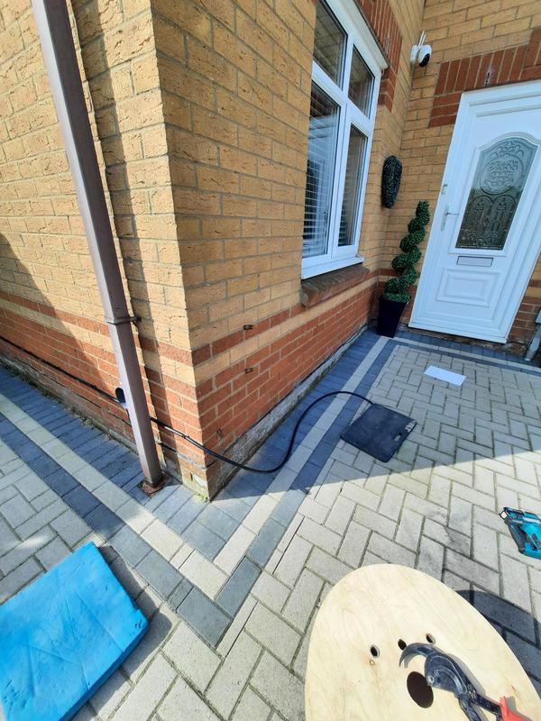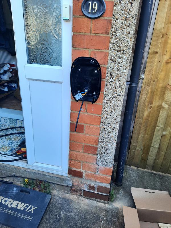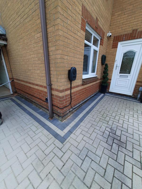- EV charger fitted into a prefab concrete garage. 60mtrs away from property.